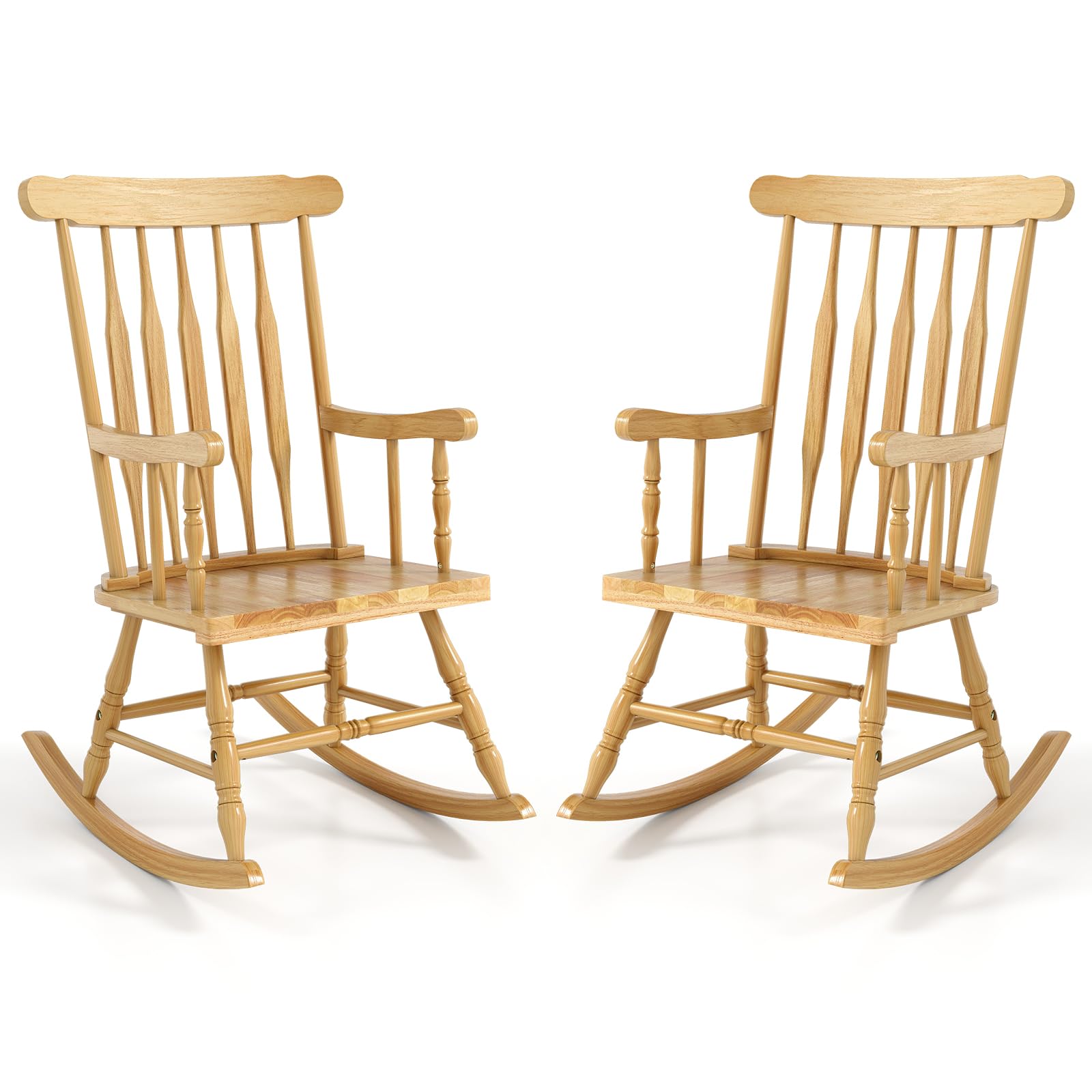 Made of natural rubber wood, this rocking chair is corrosion-resistant and durable for long-term use. And the rocker is designed with contoured slatted high back and curved armrest, which will give you comfortable sitting feeling to relieve fatigue. What's more, the grooved seat fits your hips perfectly for extra comfort. With chic and elegant style, this rocking chair is ideal for both indoor and outdoor, such as living room, balcony, terrace, backyard and more.