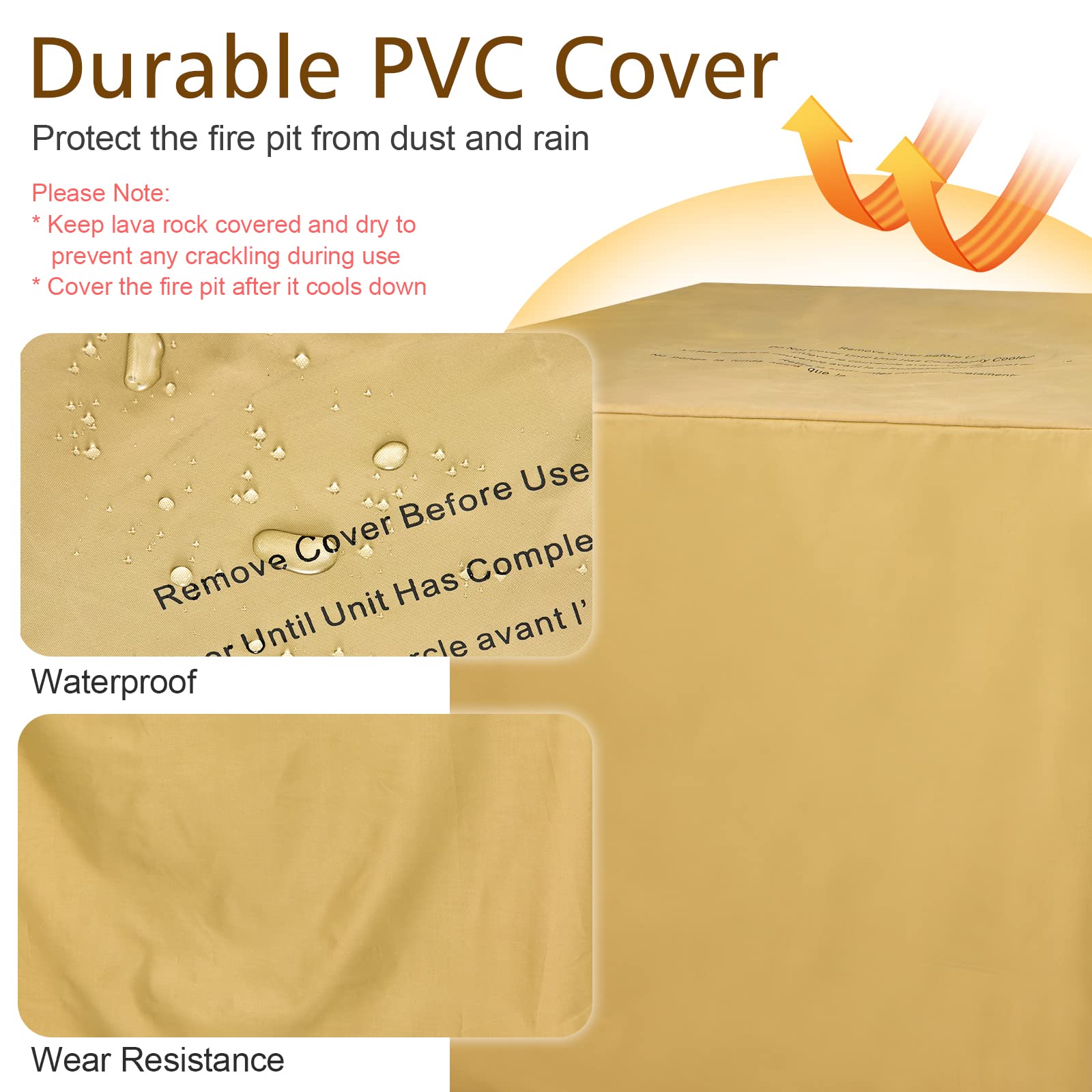 Our multifunctional propane fire pit table is a practical solution to spending more warm time in your garden, poolside, or patio. Combining decoration and heating functions, it can be used as an outdoor side table or fire pit table according to your various needs. 50,000 BTU/14.65KW powerful heat output and safe fuel ensure the safety of daily use. Besides, the ignition system is easy to operate, and you can control the flame size to low or high as needed. The excess flow valve and tank secure ring for convenient use. With a PVC cover for outdoor use, the fire pit will not be damaged due to the weather. Stable and clean burning brings you a perfect outdoor experience. Please note: keep lava rock covered and dry to prevent any crackling during use. And the simple assembly will not take a lot of time.