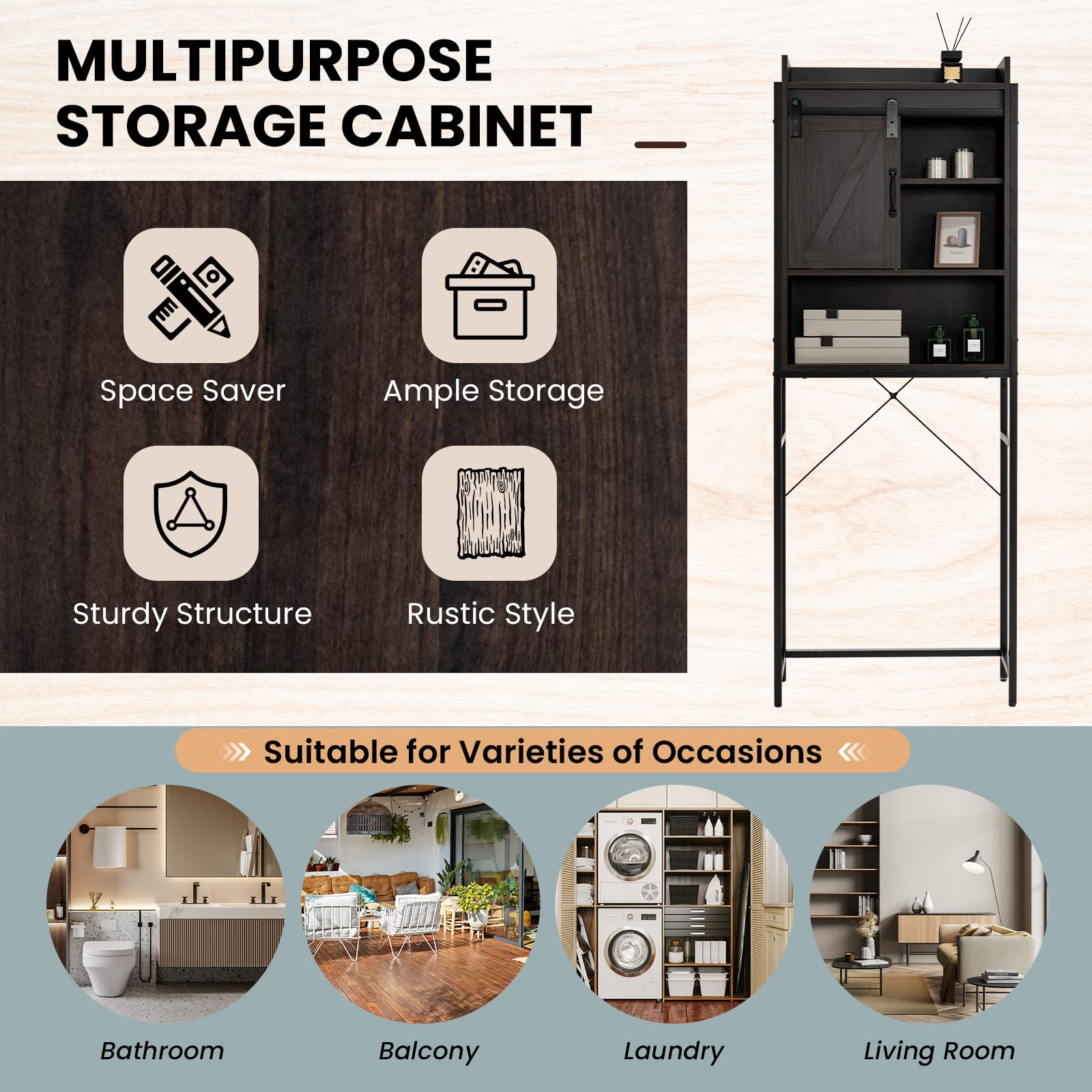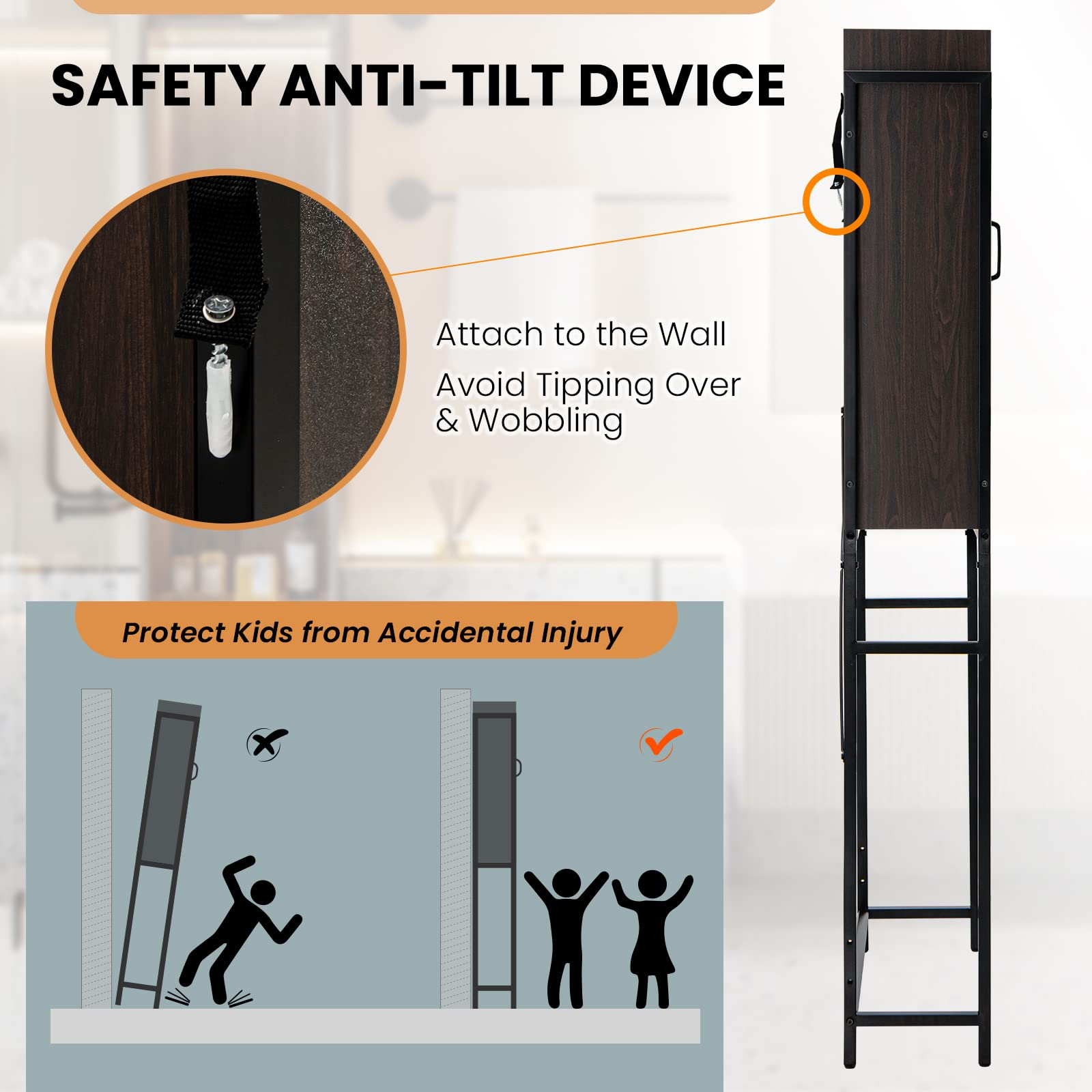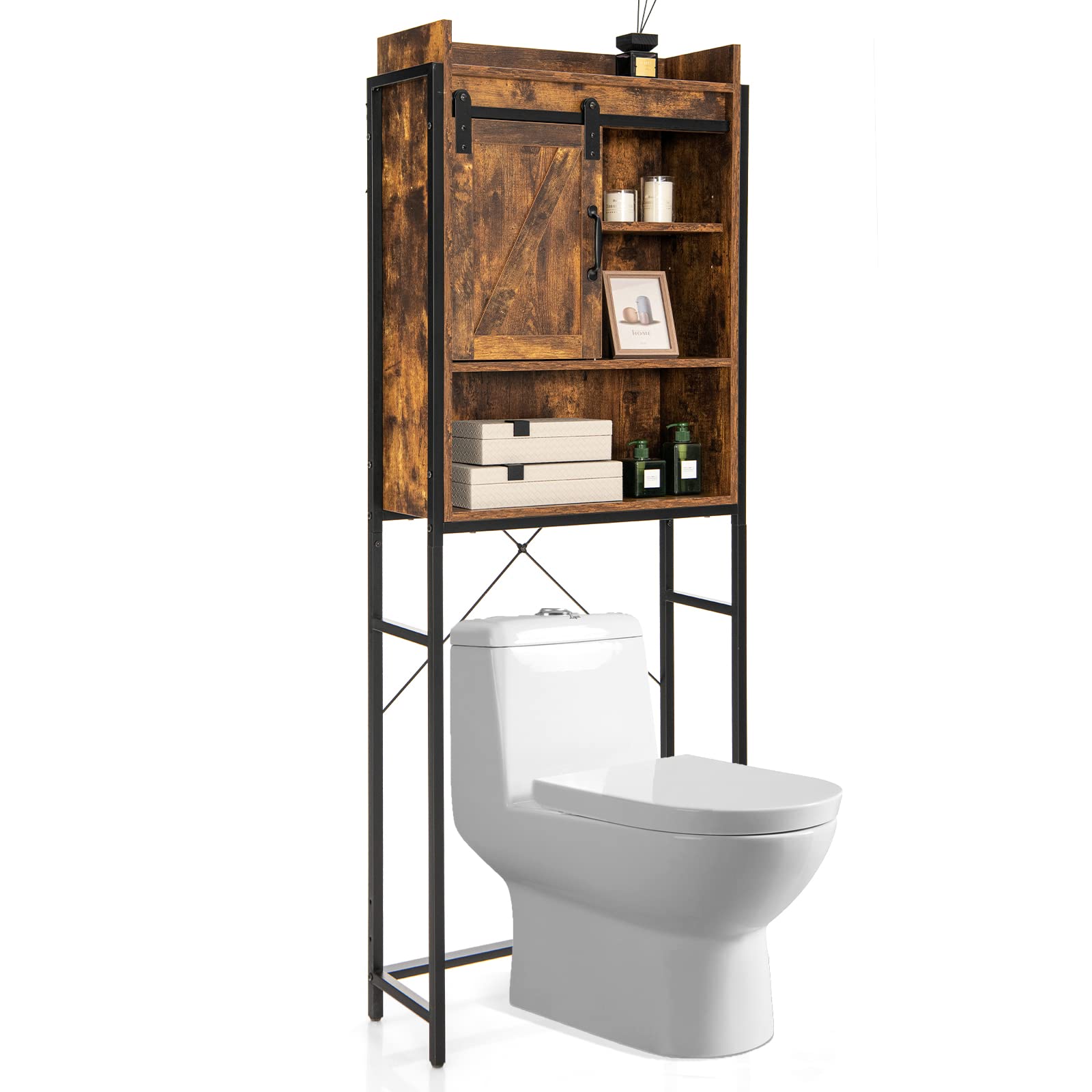 If your bathroom has limited space and nowhere to put your toiletries, this over-the-toilet storage cabinet designed to help you take advantage of the large wall space over the toilet will perfectly save your bathroom. This freestanding bathroom space saver fits most standard toilets, of course, it is also perfect for the laundry room or balcony, storing varieties of sundries. Its 4-tier?ample storage space includes 2 open shelves and 2 enclosed shelves, keeping your towels, bath supplies, makeup, ornaments, and toilet paper well organized, so you can say goodbye to the trouble of the clutter.