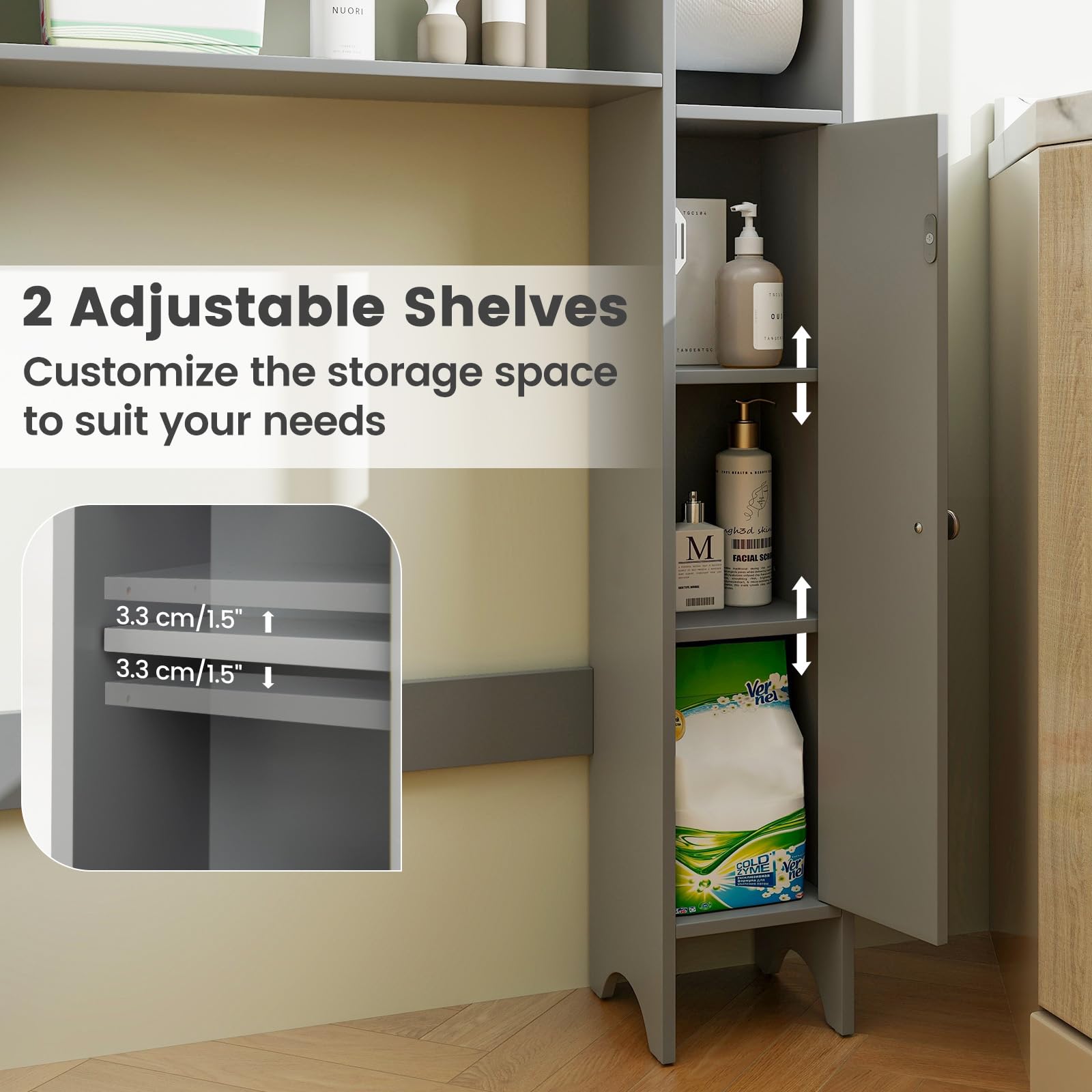 Product form Giantex Over-The-Toilet Storage Cabinet, Bathroom Freestanding Space Saver with 1-Door Side Storage Cabinet & Paper Holder $99.99 ColorGrey Shipped today? Order within: Oct 05, 2025 17:00:00 -0700 Quantity Add to cart This item is a recurring or deferred purchase. By continuing, I agree to the cancellation policy and authorize you to charge my payment method at the prices, frequency and dates listed on this page until my order is fulfilled or I cancel, if permitted. Your order will be shipped for free!