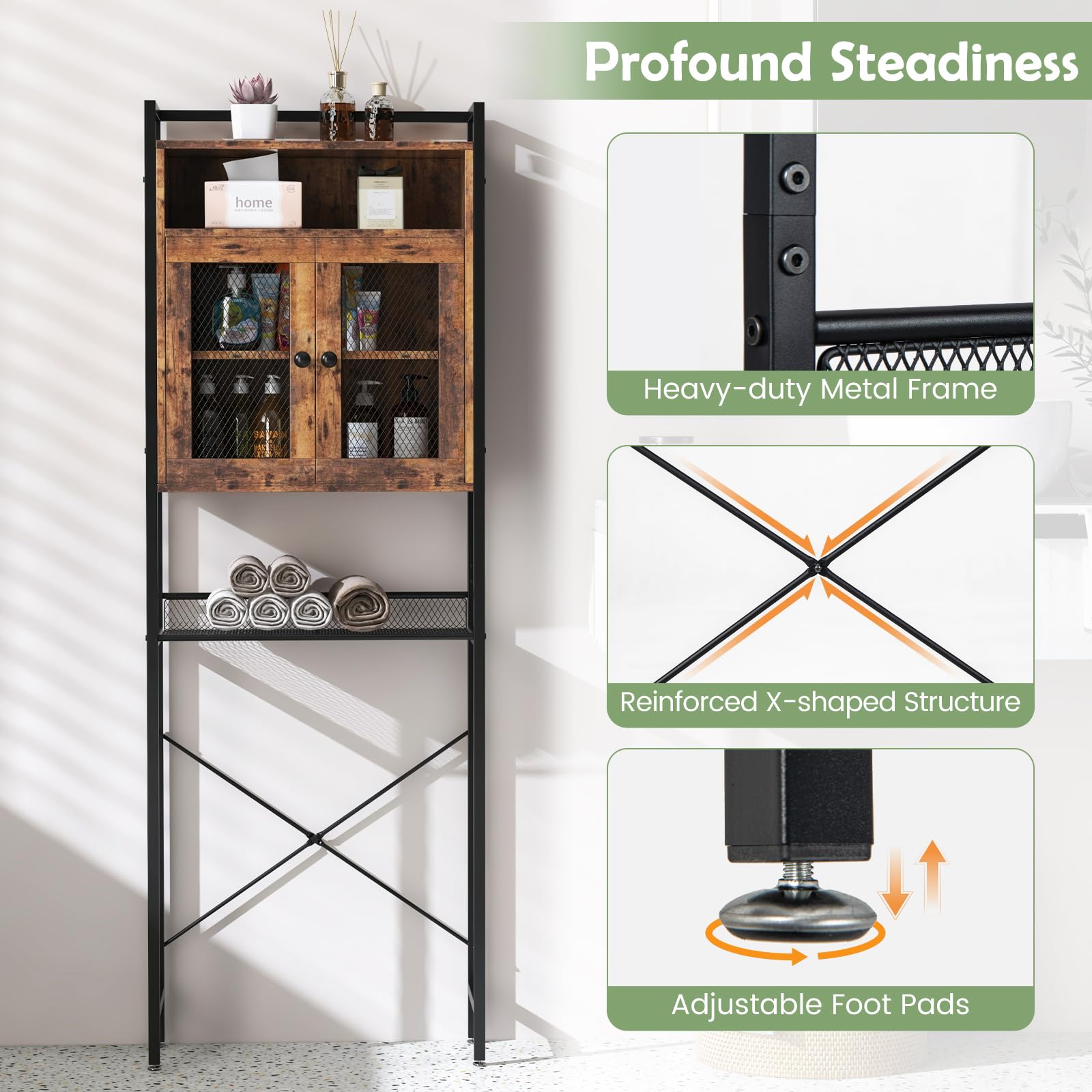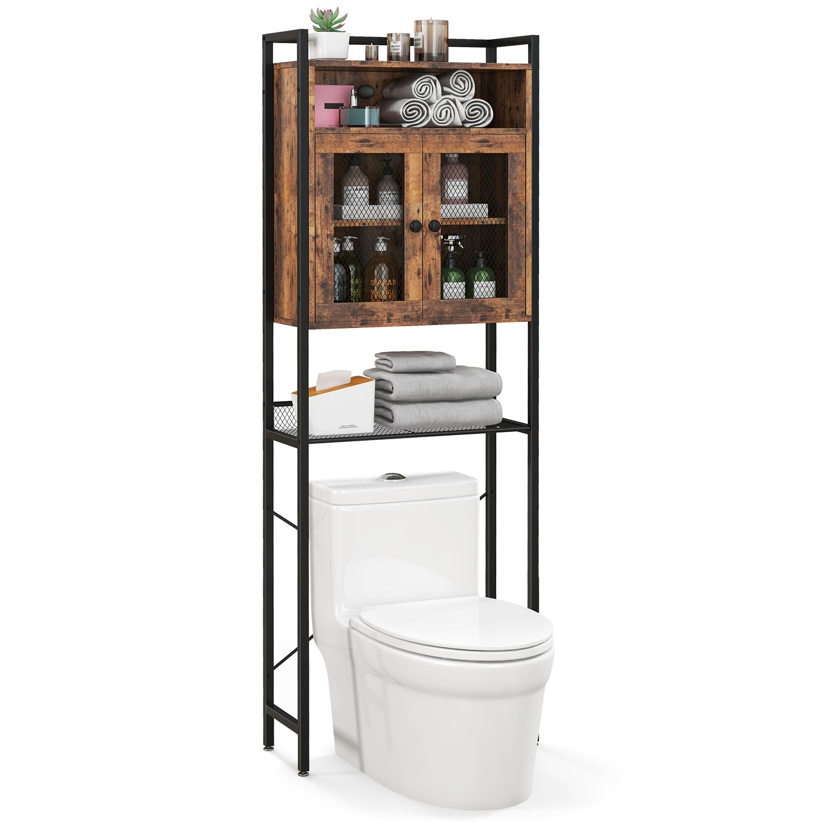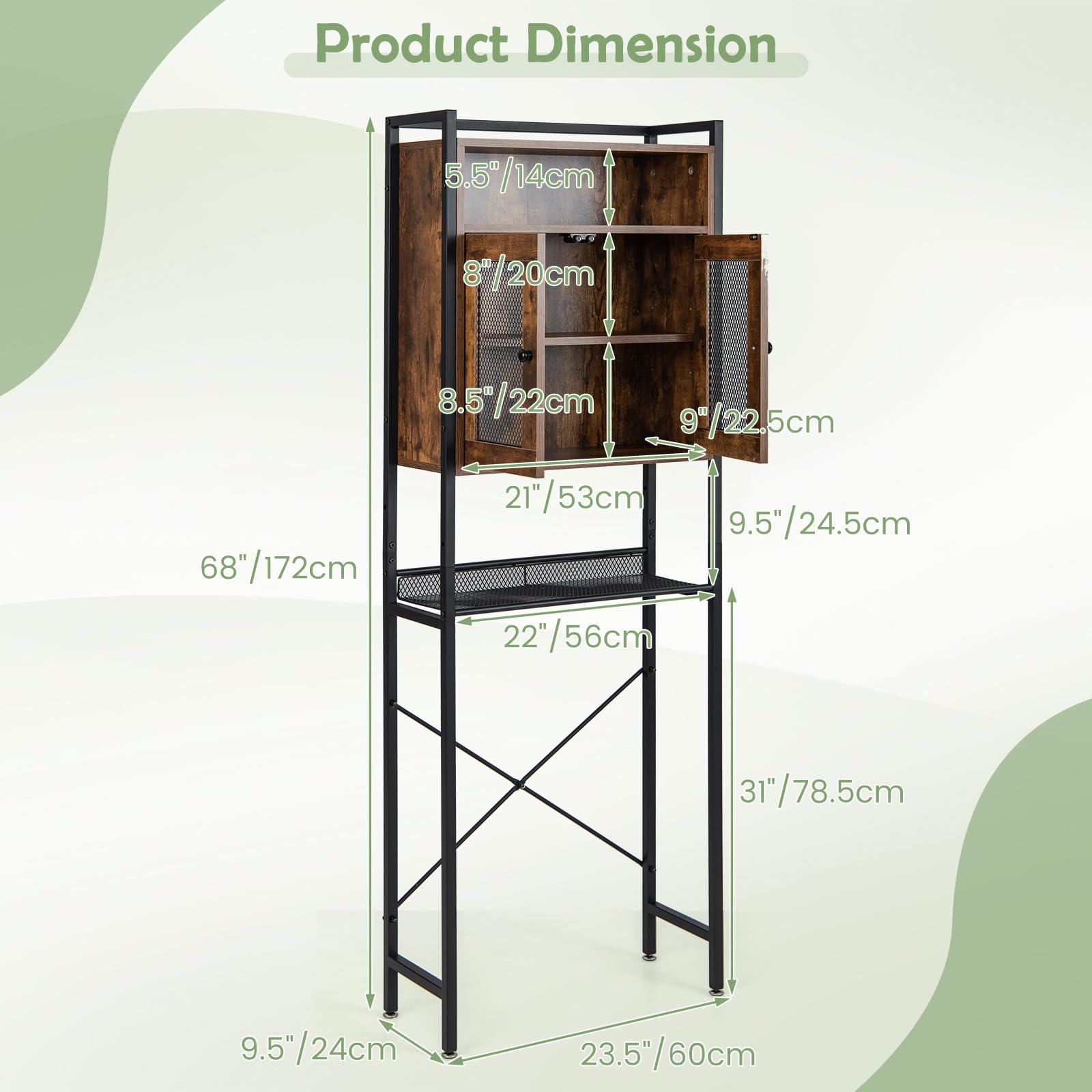 Compared to the before mess, the bathroom space saver will present a tidy and neat bathroom. Moreover, the 3-position adjustable shelf is suitable for items of various heights. Through the mesh doors, you are able to know about the interior items. Additionally, the strong metal frame with X-shaped construction ensures overall steadiness. The adjustable foot pads not only add stability but also protect the floor. Safety comes first! So, there are dual anti-toppling devices included. Furthermore, the rustic style coordinates well with other furniture, injecting a timeless touch to the house.