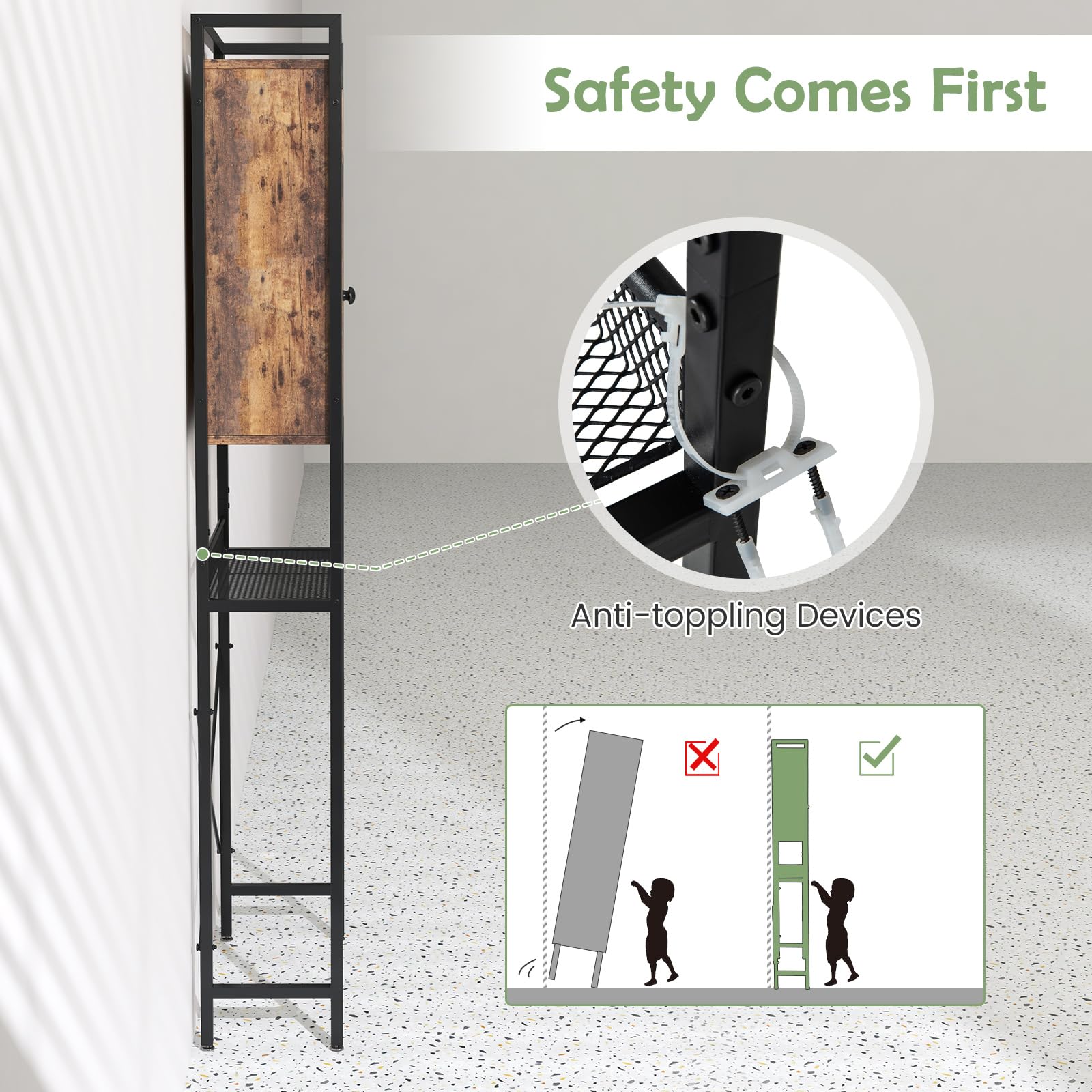- [Stable Metal Construction]: Supported by the heavy-duty metal frame, this over-the-toilet storage cabinet stands stably without wobbling. Moreover, the reinforced X-shaped structure and adjustable foot pads enhance stability while the anti-toppling devices increase safety.