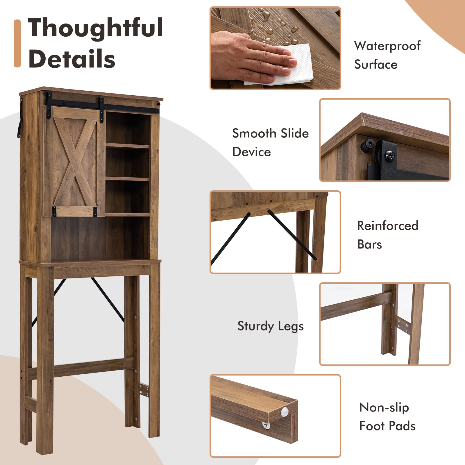 Designed with a sliding bar door that can be moved freely, this freestanding bathroom storage cabinet offers open and closed storage space. Hence, your bathroom essentials can be stored in the cabinet for easy access. Behind the door, there are 3-level adjustable shelves that aim to hold objects of different heights. You can use this over the toilet storage cabinet with confidence since there is an anti-toppling device included. The sturdy legs provide firm support for steady performance. When it comes to daily cleaning, a water-resistant surface will help a lot.