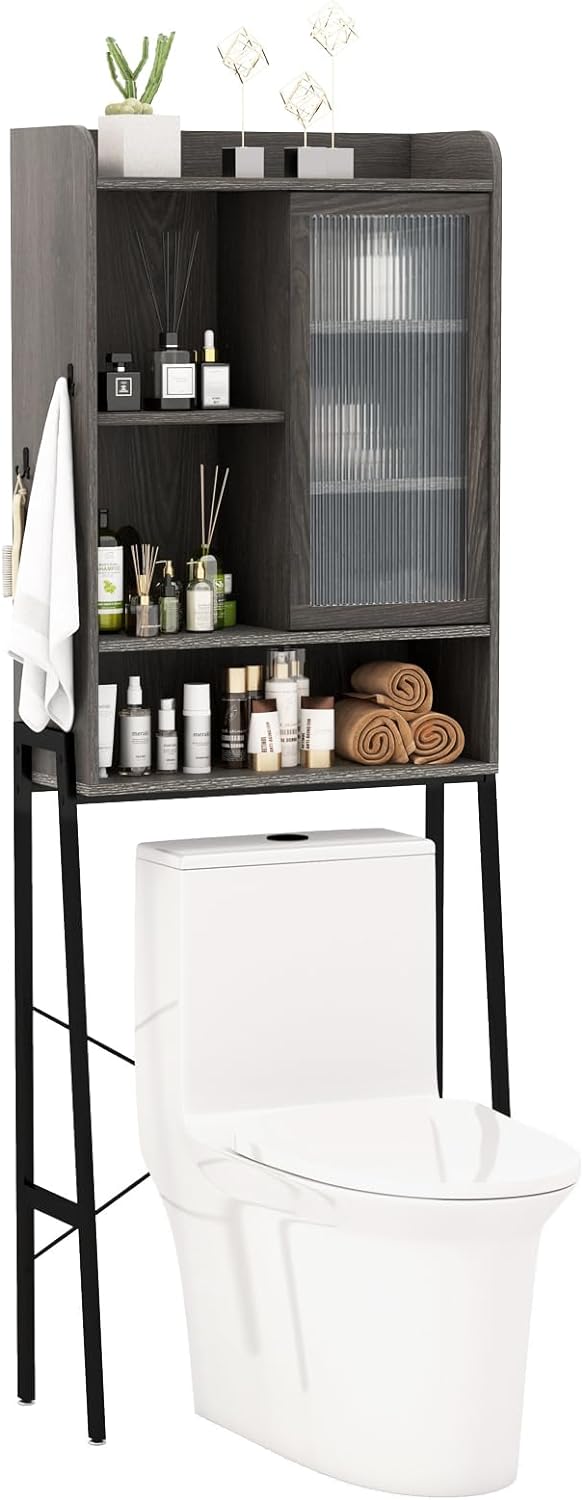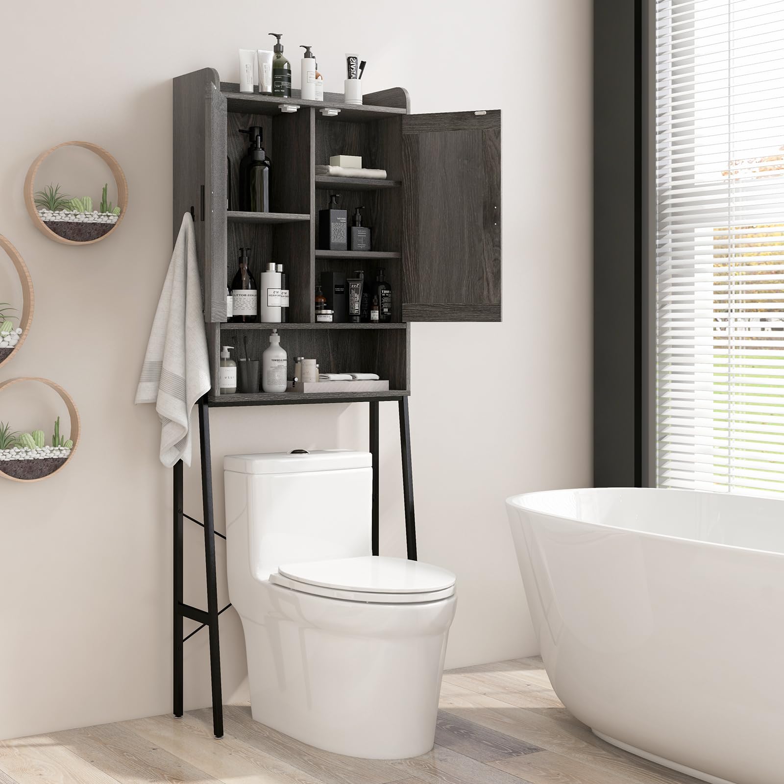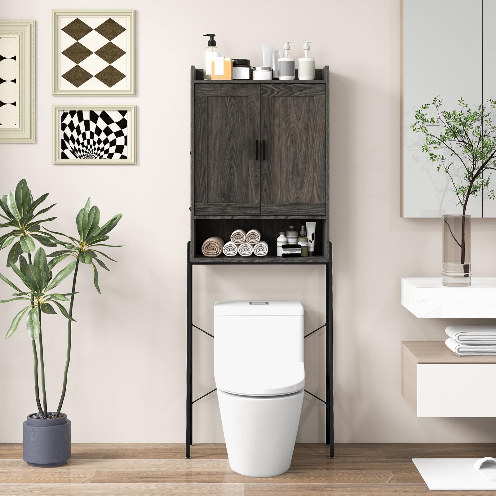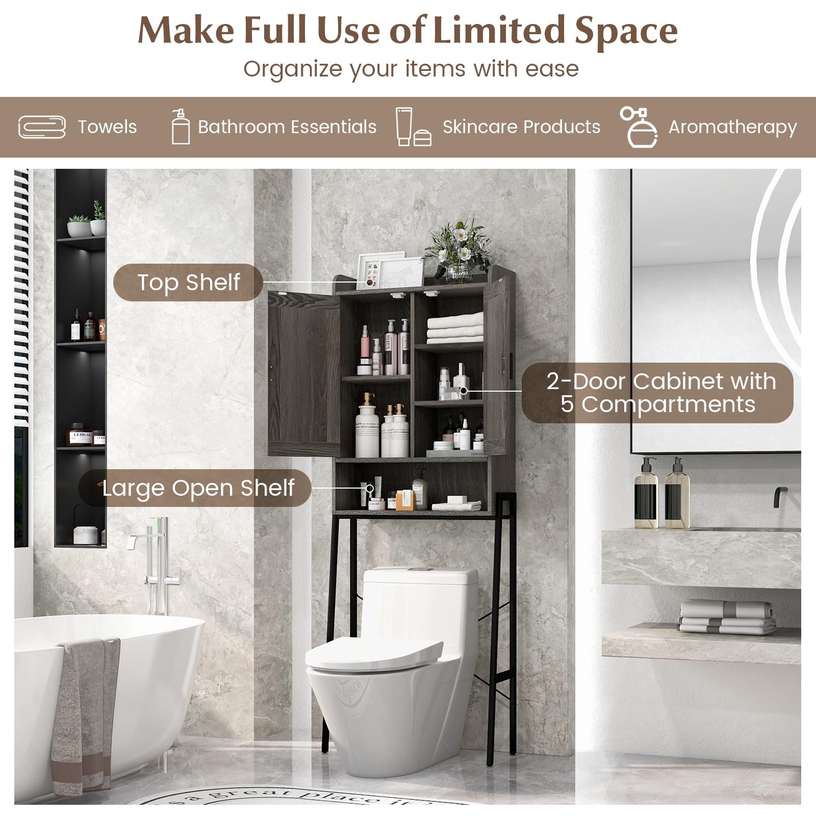 - More Storage, More Tidiness: Equipped with a top shelf, a 2-door cabinet with 5 compartments and a large open shelf, this over the toilet storage cabinet can organize your items with ease, like towels, skincare products, toiletries and more.