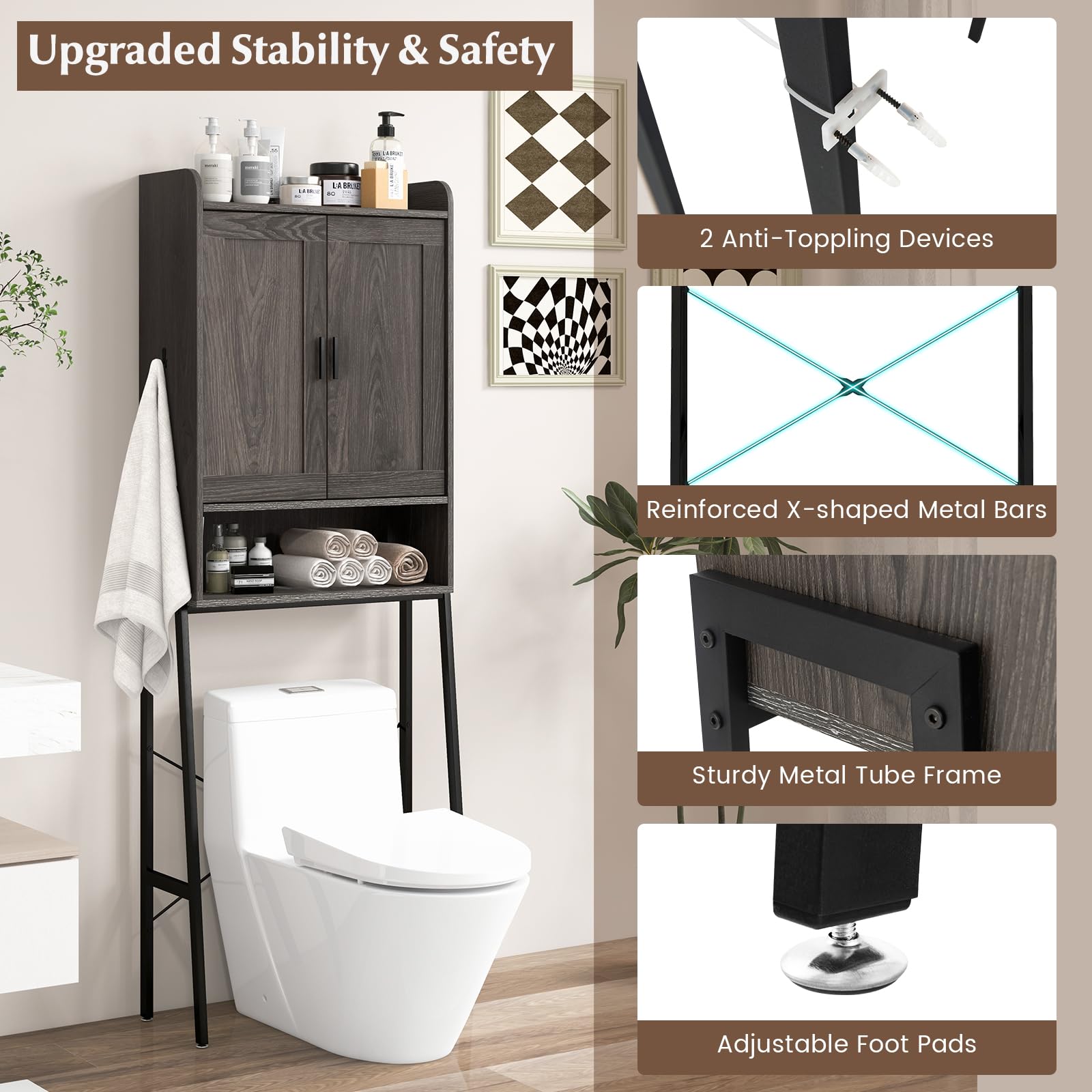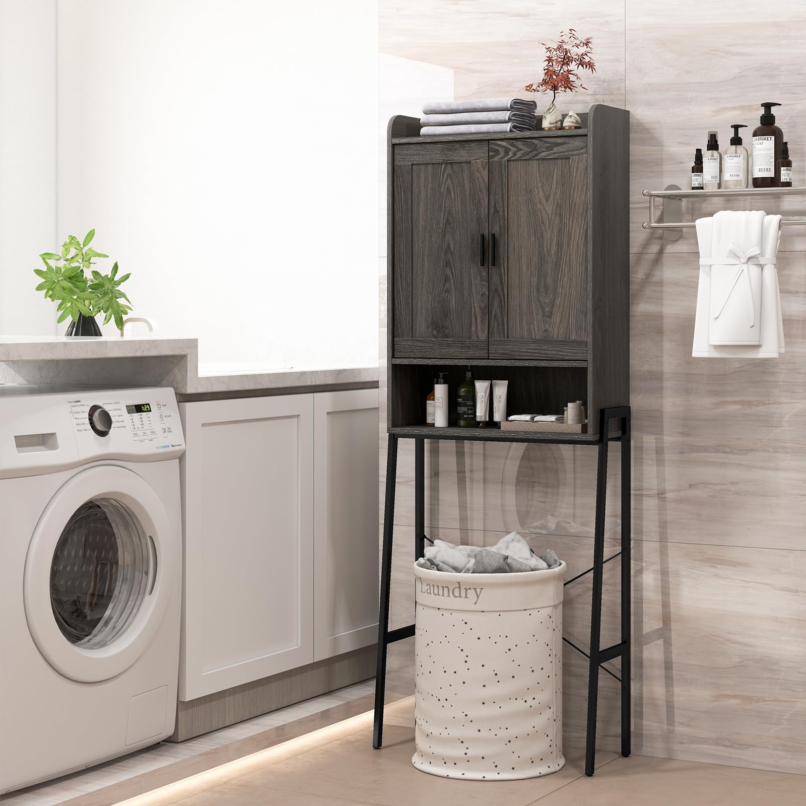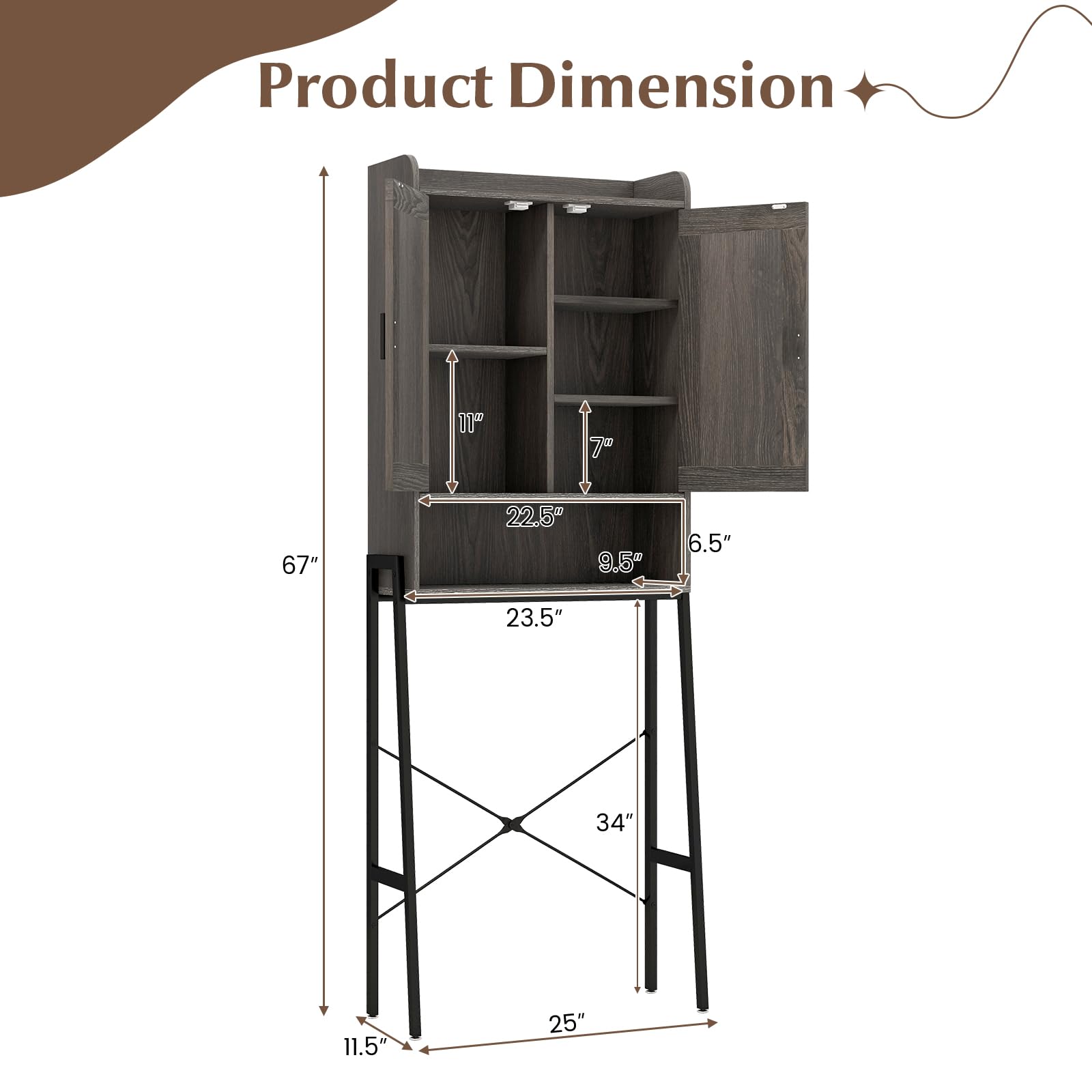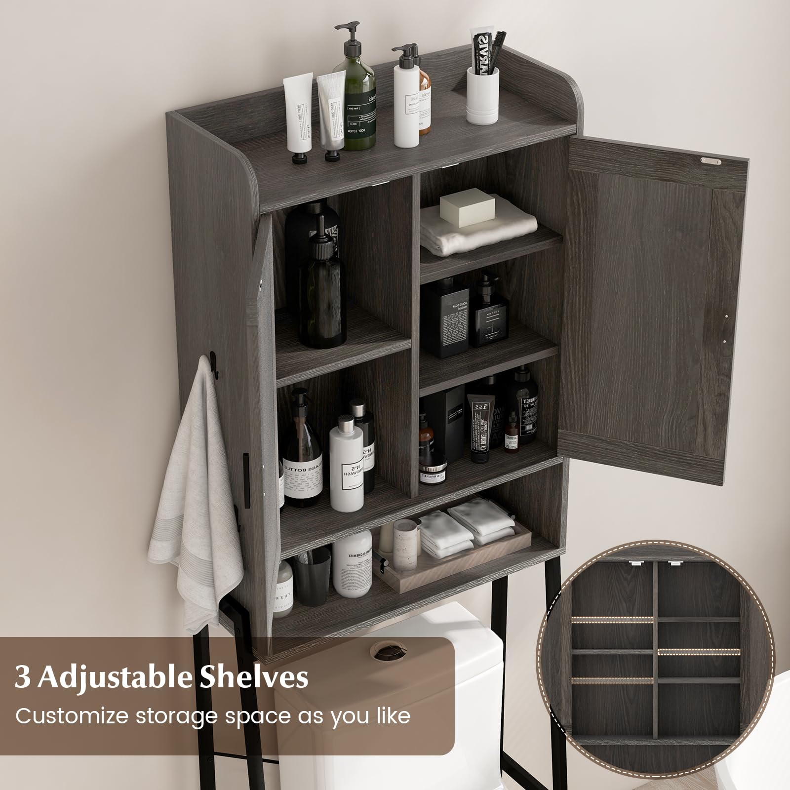 - More Storage, More Tidiness: Equipped with a top shelf, a 2-door cabinet with 5 compartments and a large open shelf, this over the toilet storage cabinet can organize your items with ease, like towels, skincare products, toiletries and more.