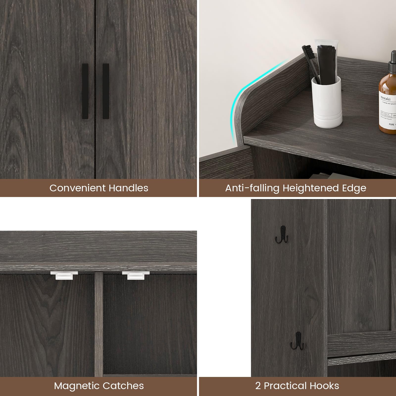 - Multiple Humanized Details: The top shelf of this over the toilet storage cabinet features anti-falling heightened edge to keep your items in good condition. Moreover, the double-door cabinet can be easily opened and closed by the convenient handles.