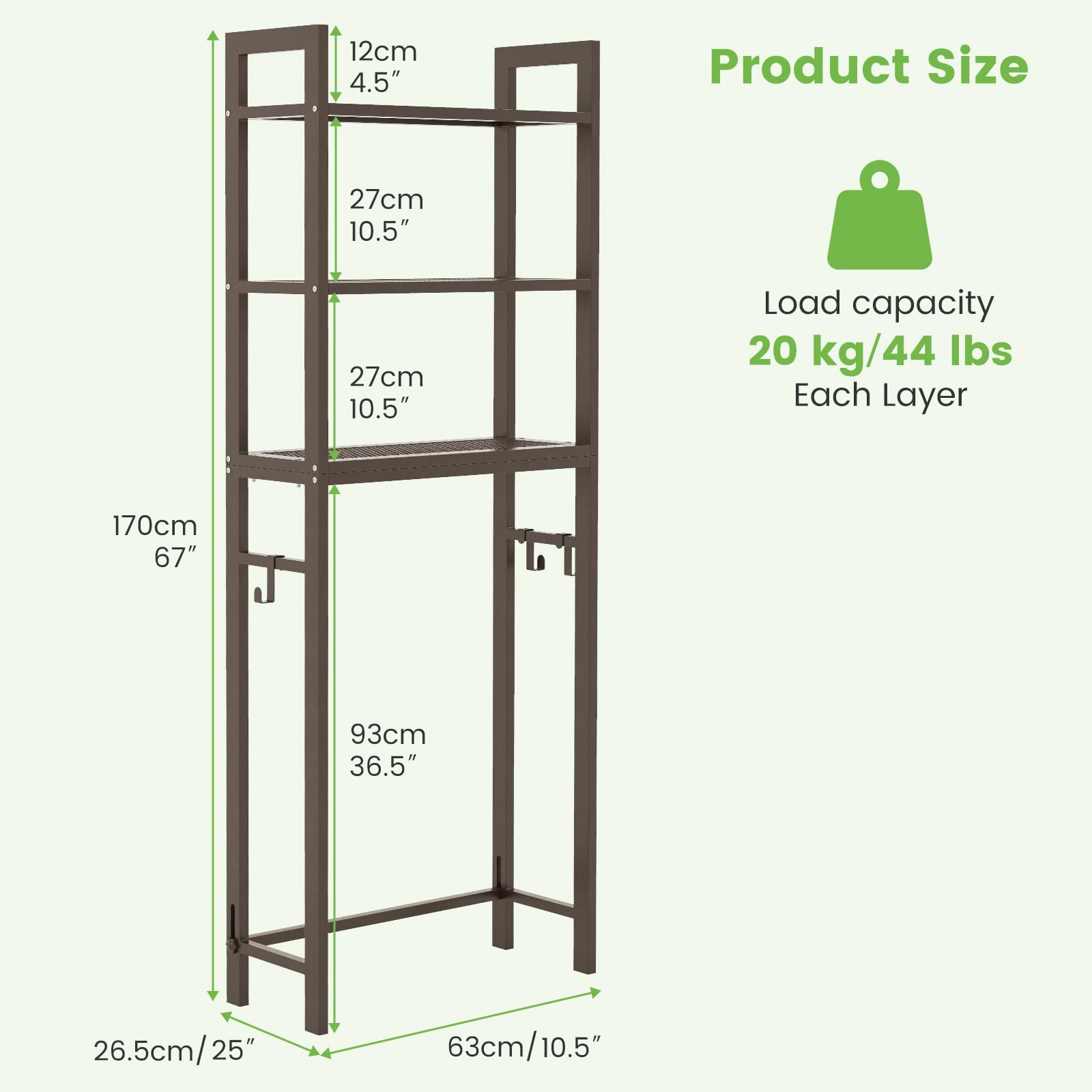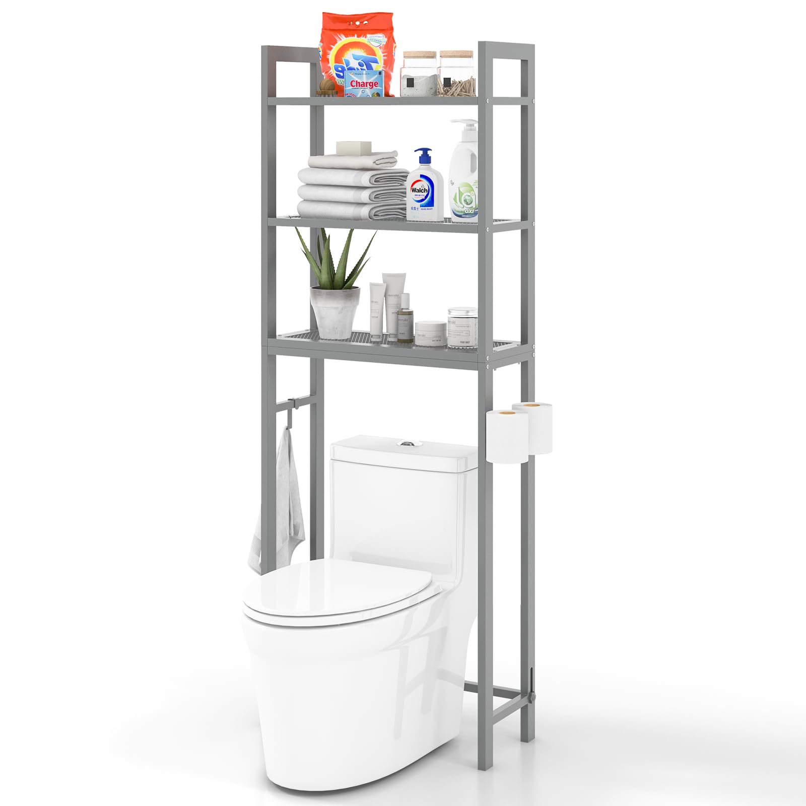 - 3-Tier Above Toilet Shelf: The freestanding bathroom organizer features 3 large open storage racks for storing different items such as paper towels, bath products, wash supplies, aromatherapy, ornaments, etc. You no longer need to worry about the bathroom being messy and it can keep what you use daily within hand.