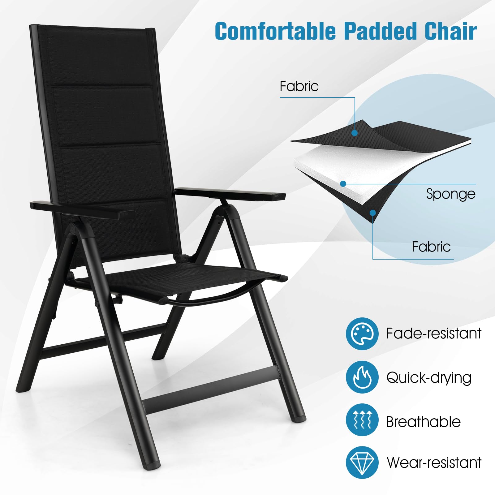 The standout feature of these aluminum folding chairs is the foldable & assembly-free design, allowing for space-saving storage and easy transportation. Not only is the folding mechanism smooth and effortless, but it also enables quick set-up and take-down. Whether you have a small balcony or a spacious patio, these outdoor reclining chairs will elevate your seating options and seamlessly blend into your space. The tilted backrest and armrest will provide enhanced relaxation and comfort. The seating surface is padded and covered in a durable fabric that is both easy to clean and maintain. The chairs are crafted with quick-drying sponge, ensuring they remain comfortable in any weather conditions.