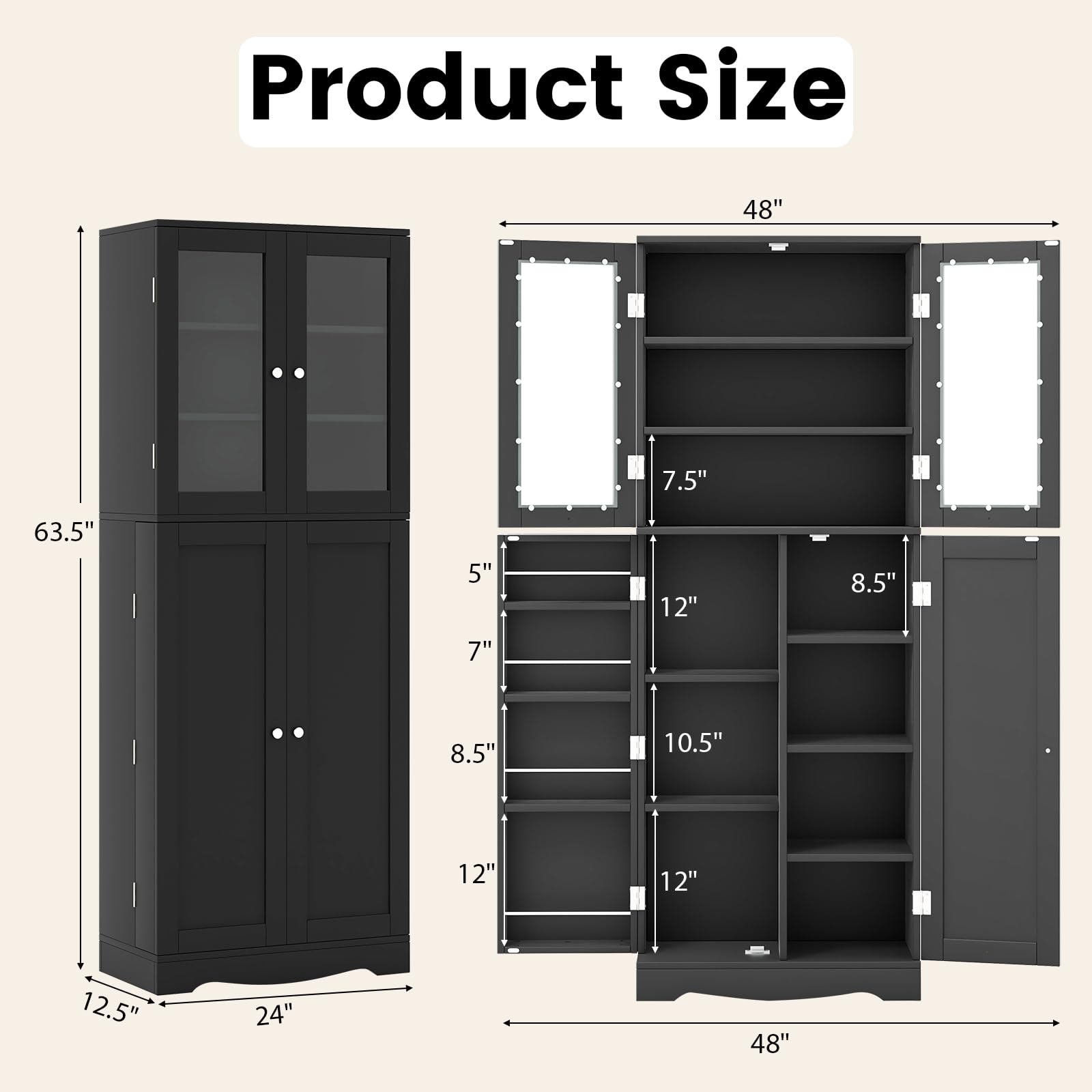 • Multiple Door Storage Shelves: This pantry cabinet features 2 double-door storage cabinet that reveal 3 shelves, 7 compartments and 4 racks upon opening, providing versatile storage options for kitchen essentials. Thus, you will no longer be bothered about messy kitchen.