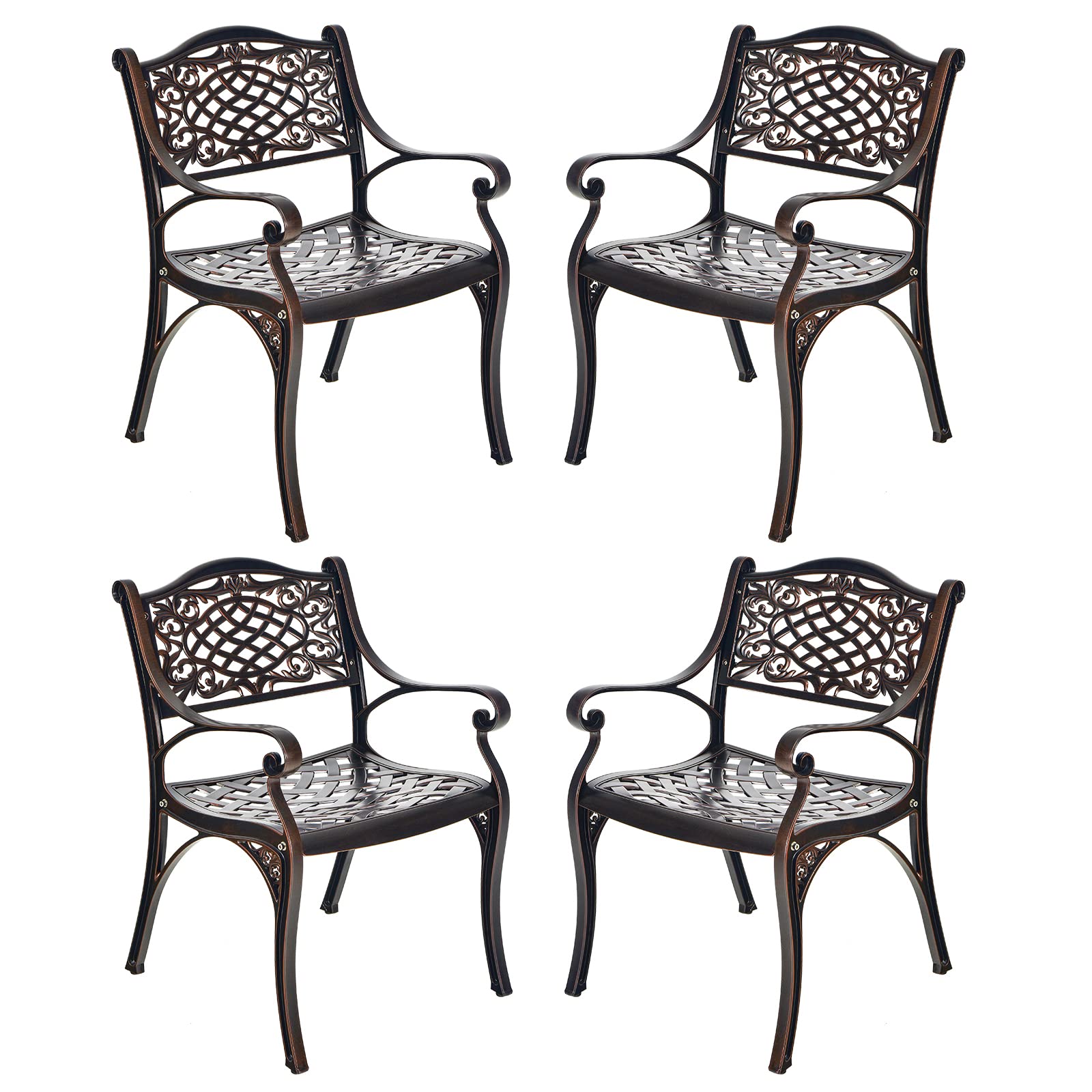 - Premium Cast Aluminium Chairs: Made of weather-resistant cast aluminum, our patio dining chairs ensure longer service life. The rustproof and waterproof finish will not fade or break easily, which also requires easy maintenance. Thus, you can be confident using this premium chair set outdoors for years. 4 chairs will be shipped in 2 boxes. If you just received the 1st one, please kindly wait for the 2nd or come to inquire with us.
