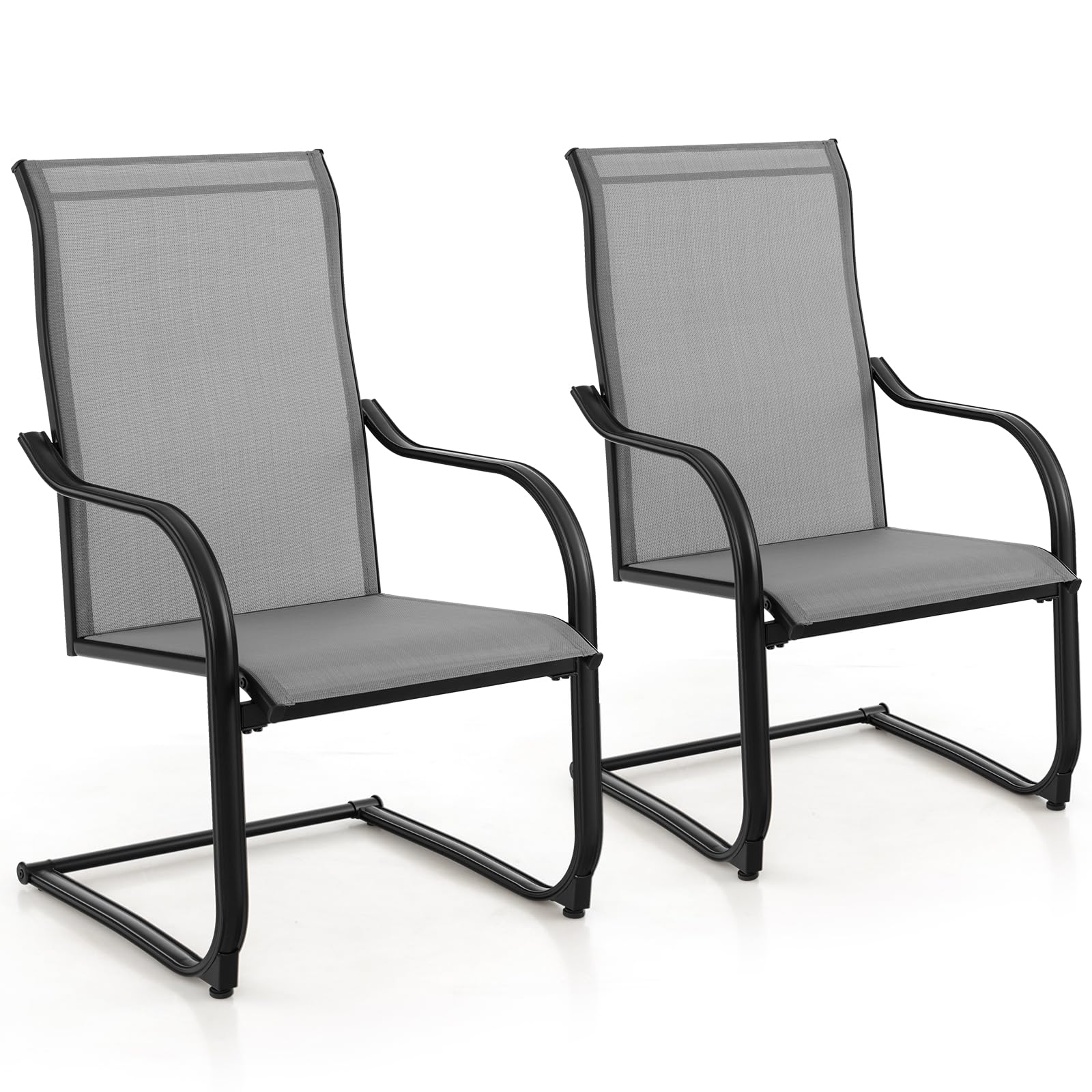 Ergonomically designed with 26” high backs, curved armrests, and widened seats, these patio chairs are comfortable enough for a long time sitting. What’s more, the C-spring structures provide a 15° rocking motion for relaxed sitting. As for durability, the fast-drying and wear-resistant fabrics as well as the anti-rust and sturdy metal frames will tell you the answers.