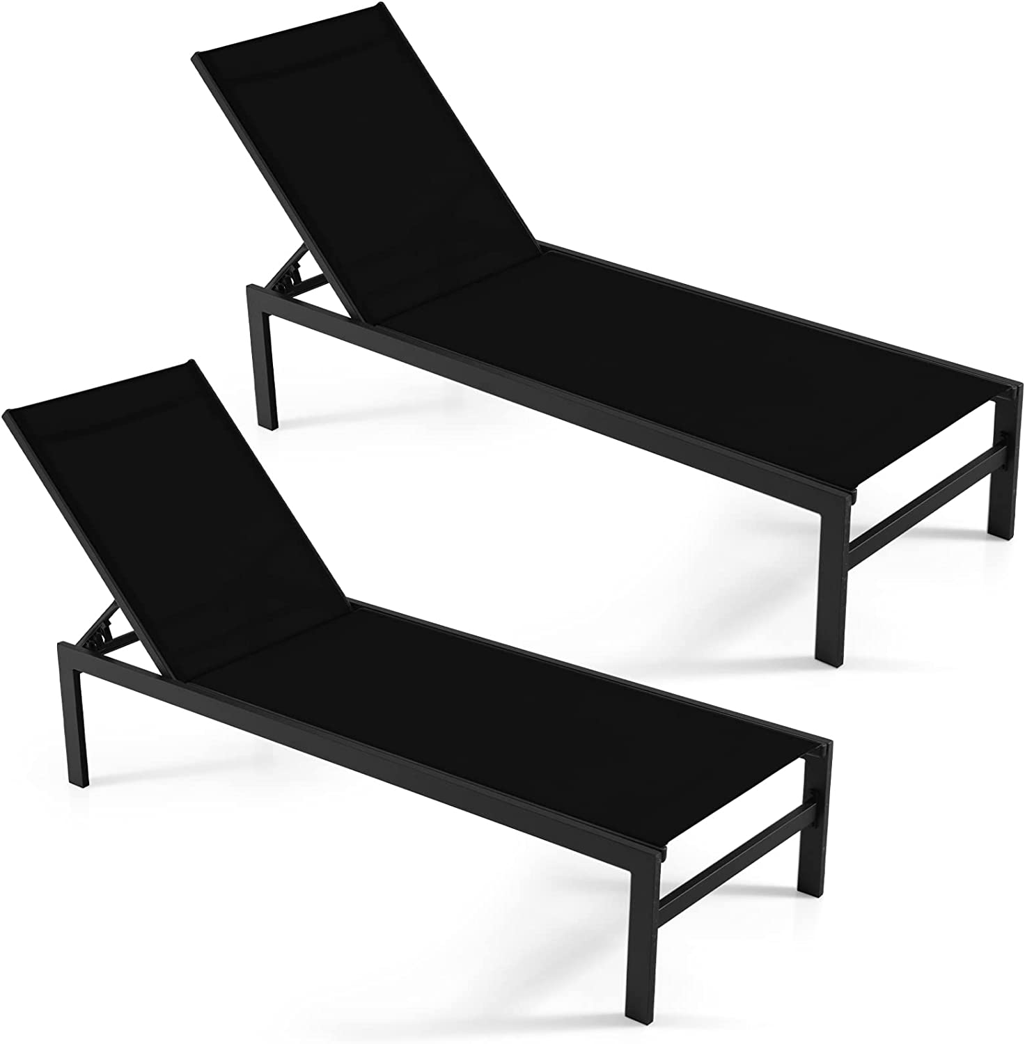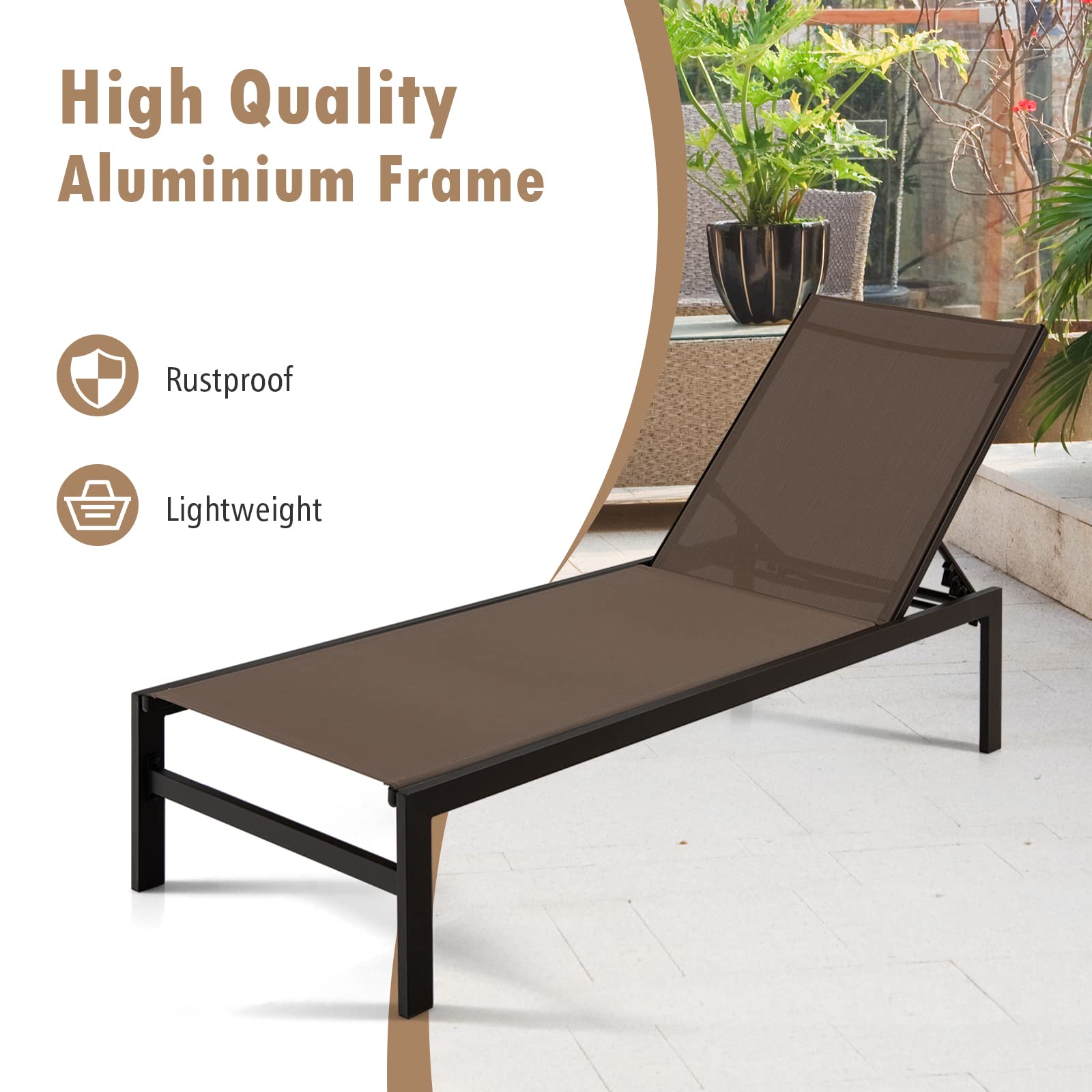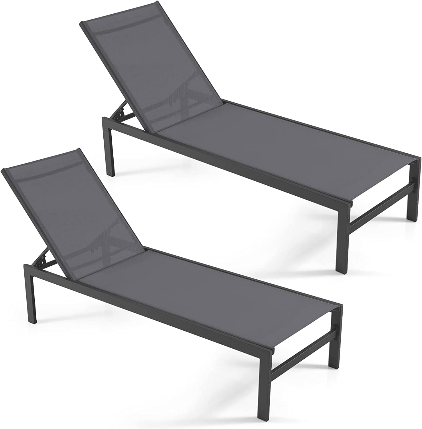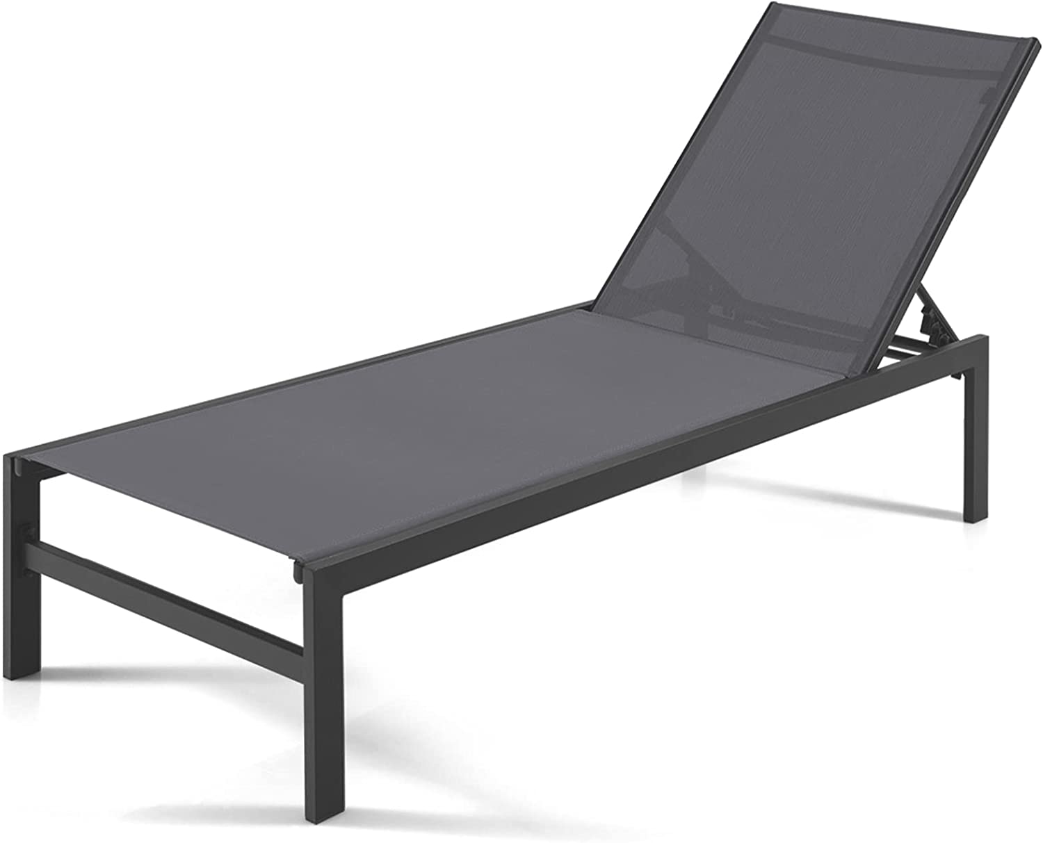 Designed with a 6-position adjustable backrest, this reclining lounge chair allows you to rest with the backrest up or flat. as needed for comfortable rest on the patio, poolside, beach, and deck. The rustproof aluminum frame ensures durability for outdoor use and the breathable fabric offers ultimate comfort. With a minimalist style, this patio lounge chair will add a touch of elegance to your space no matter where it is placed. What's more, the high backrest and wide seat provide you with better support. This versatile patio chaise lounge chair will achieve all your leisure needs!