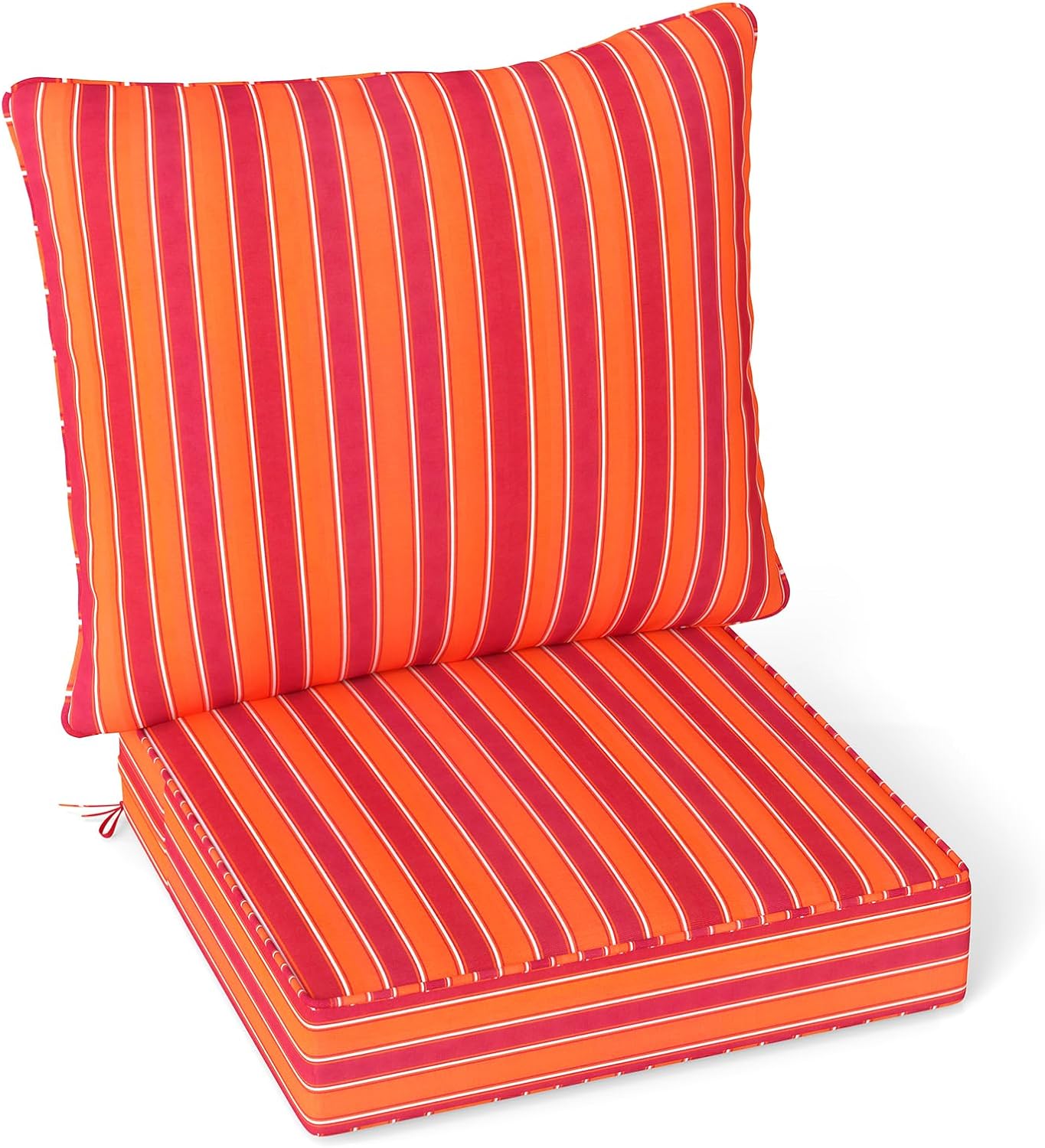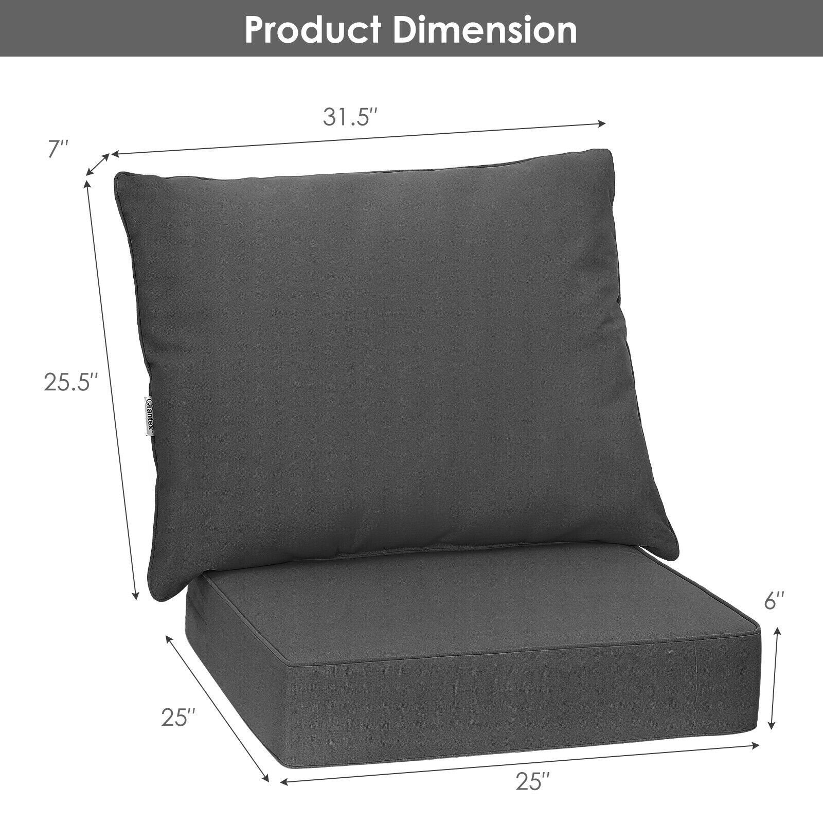 - Suitable Cushion Size: Our outdoor cushion set comes with a seat cushion and a back cushion, which can serve as a sun chair cushion, sofa cushion, car seat cushion, and so on. Seat cushion size: 25"L x 25"W x 6"H, back cushion size: 31.5"L x 25.5"W x 7"H. Plus, the lightweight design allows you to move it from one chair to another without effort.