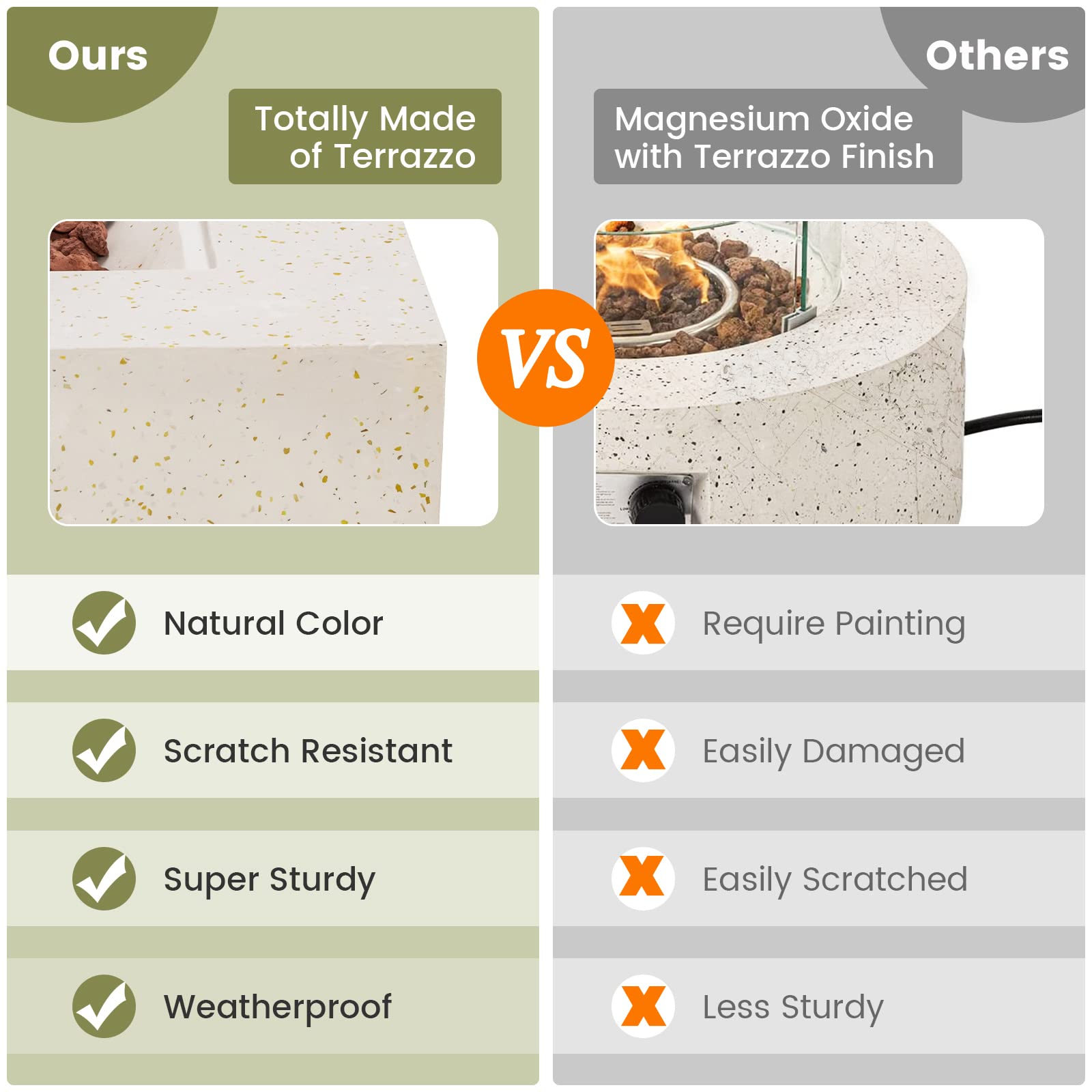 √ Long-time outdoor use with high-grade terrazzo and protective cover.