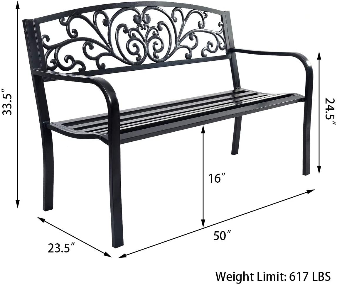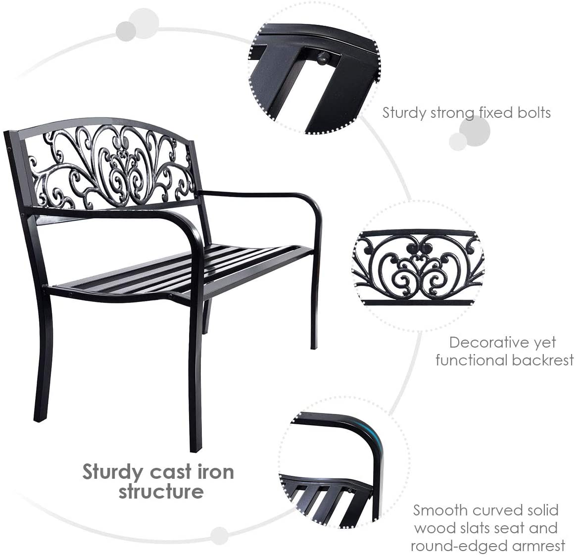 This garden bench has an elegant design. The floral scroll backrest will create a natural and casual atmosphere to your patio that is sure to contribute to the overall beauty of your home's external appearance.