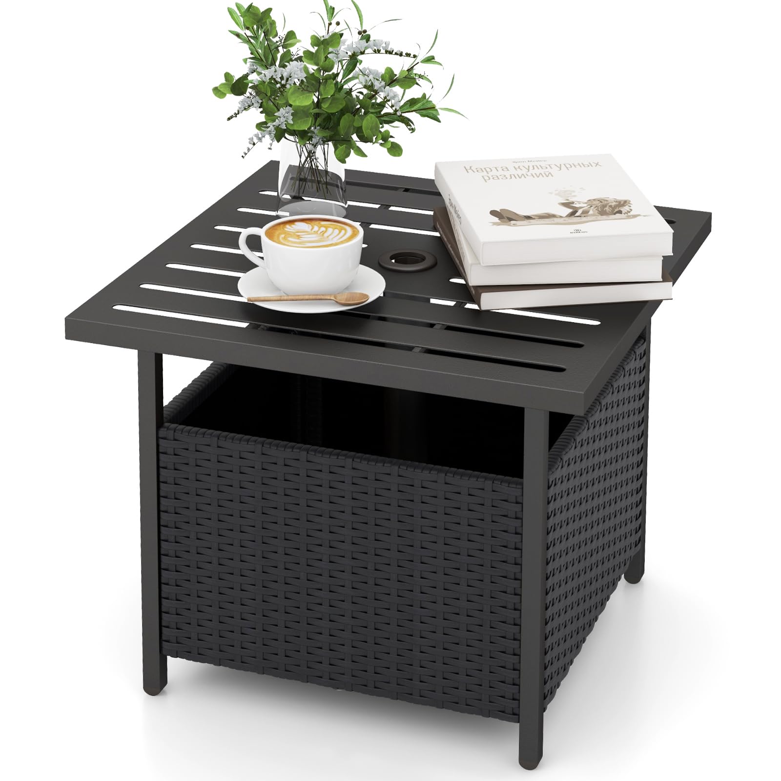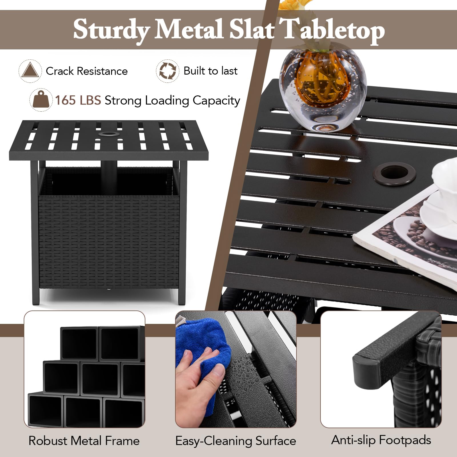 Crafted with weather-resistant PE rattan and a durable metal frame, this table is designed to withstand sun exposure, fading, and harsh weather conditions. The sleek metal slat tabletop offers a stable, easy-to-clean surface for drinks, snacks, and outdoor essentials.