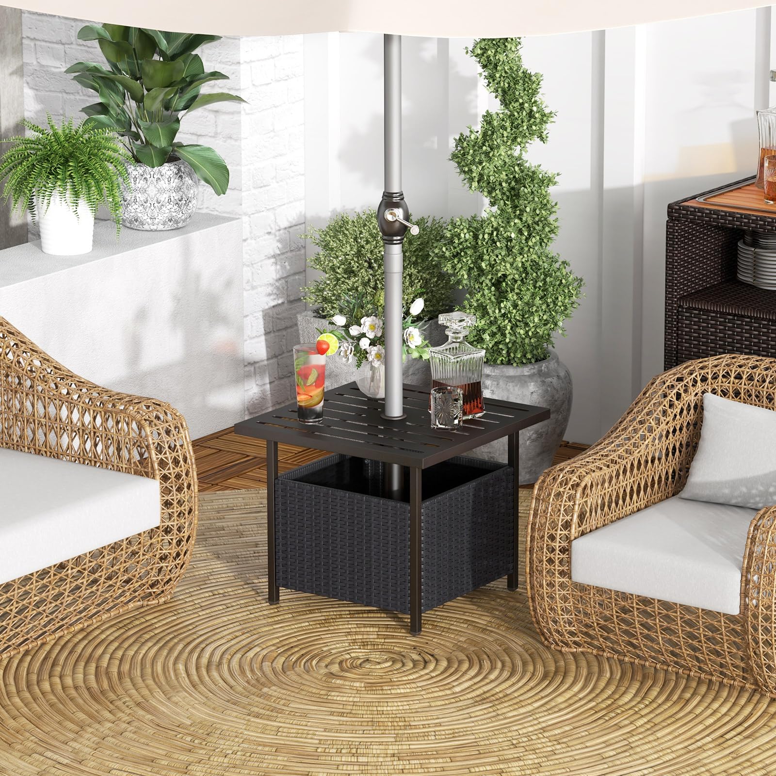 Perfect for patios, gardens, balconies, and poolside settings, this stylish and functional wicker side table is a must-have for any outdoor gathering.