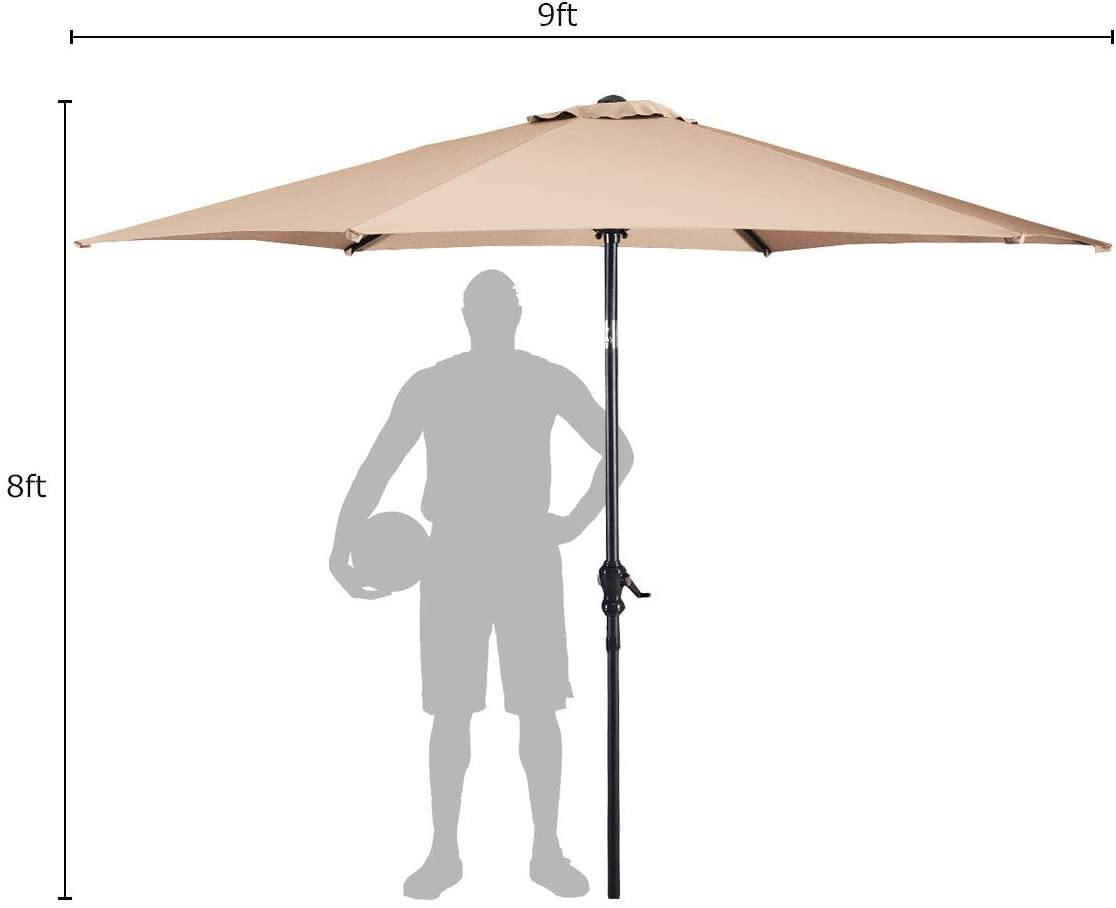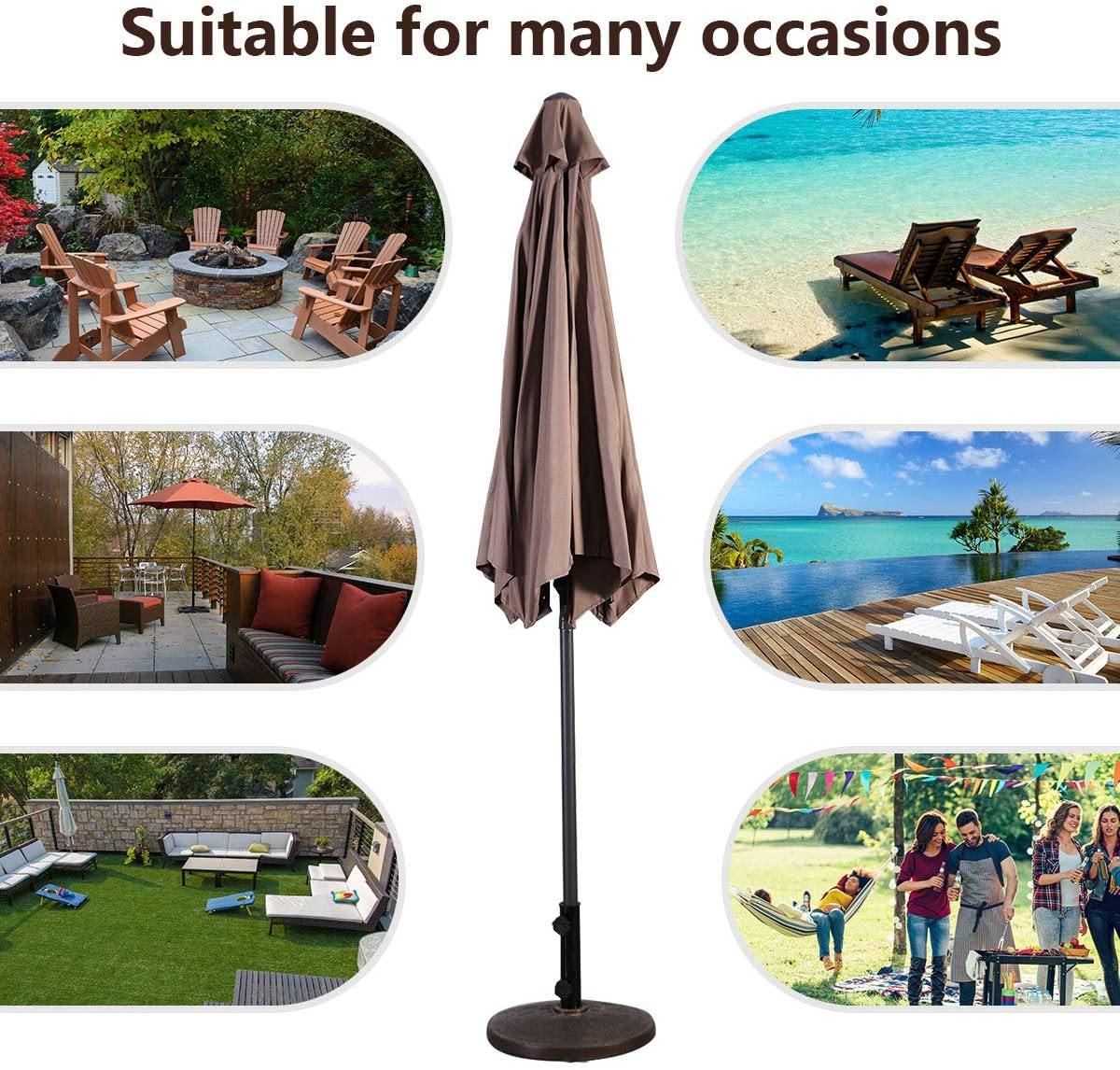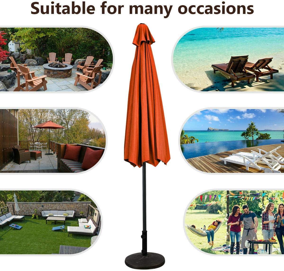 - 9 FT Diameter - Our patio umbrella can shade 42"- 54" round, square or rectangle table with 4 to 6 chairs. It is suitable for both residential and commercial places.