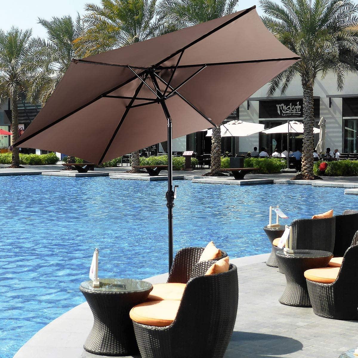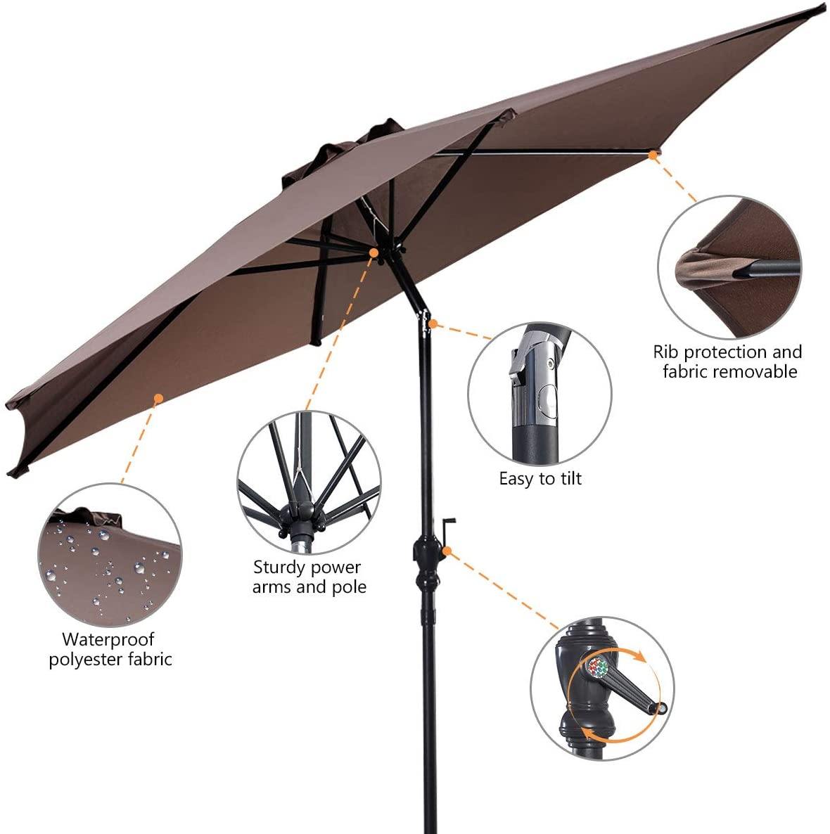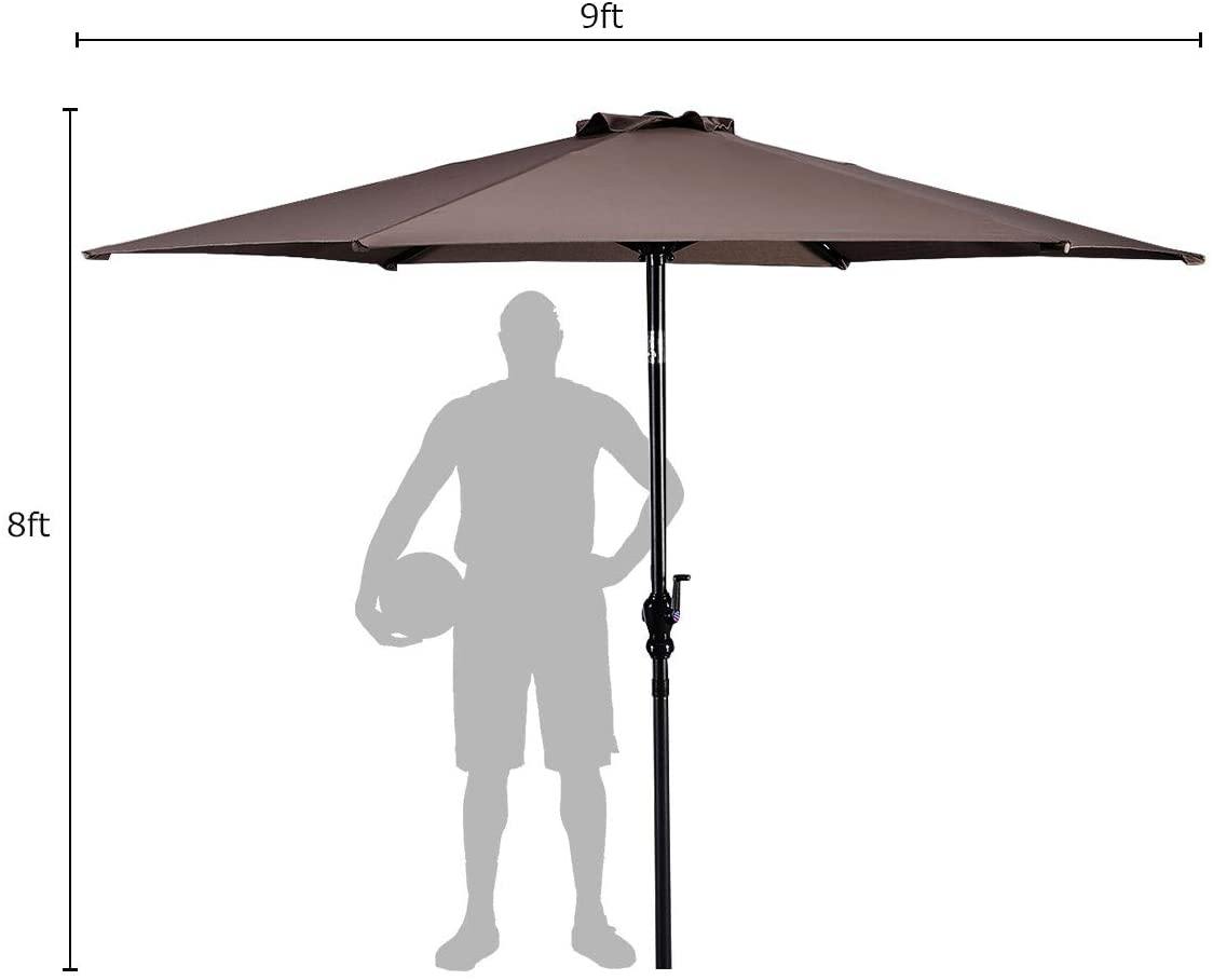 - 9 FT Diameter - Our patio umbrella can shade 42"- 54" round, square or rectangle table with 4 to 6 chairs. It is suitable for both residential and commercial places.
