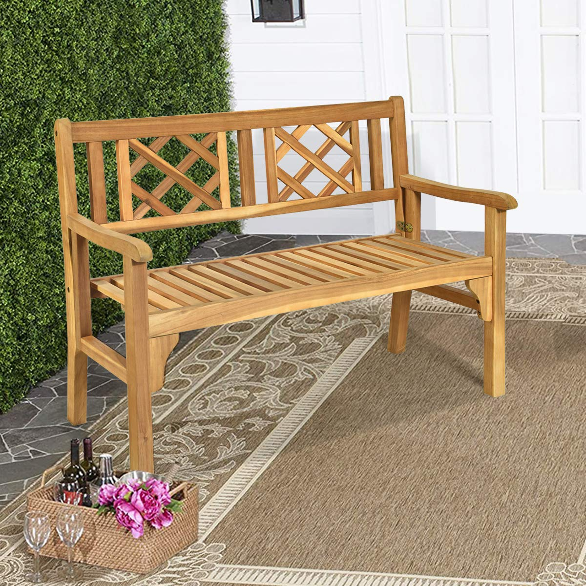 - Ergonomic & Cozy Wood Bench: The seating of the bench is spacious enough for 2 people to sit together. And, the wide armrest and curved backrest of this wood bench provide great support to you. More importantly, the bench seat uses using wood slat, which is breathable and comfortable.