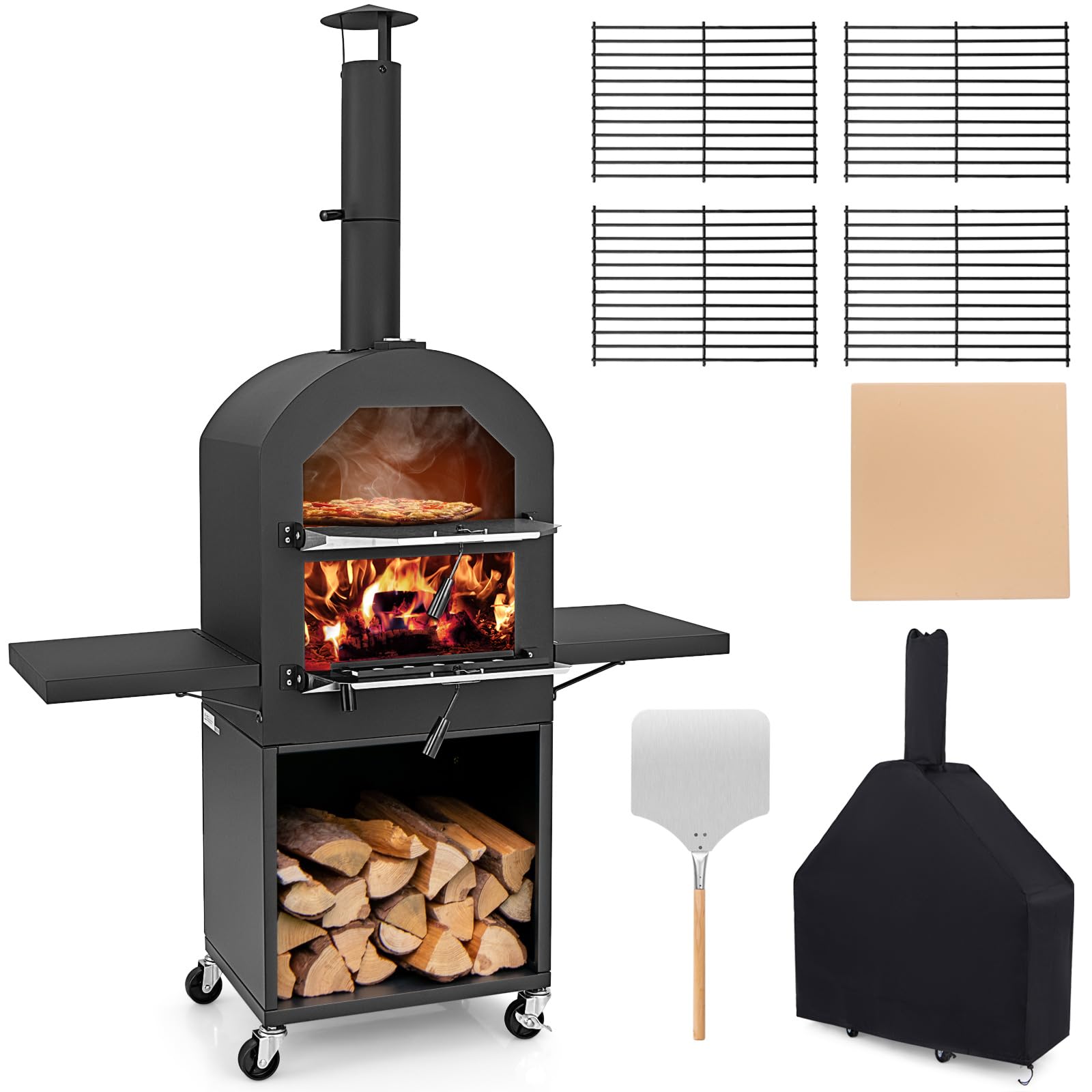 - Complete Accessories & Mobility: You will receive 1 pizza oven, 1 waterproof cover, 1 pizza stone, 1 pizza peel, 2 cooking grids, and 2 charcoal grates. For convenient movement, the outdoor pizza oven is equipped with 4 wheels, 2 of which have brakes for stability.