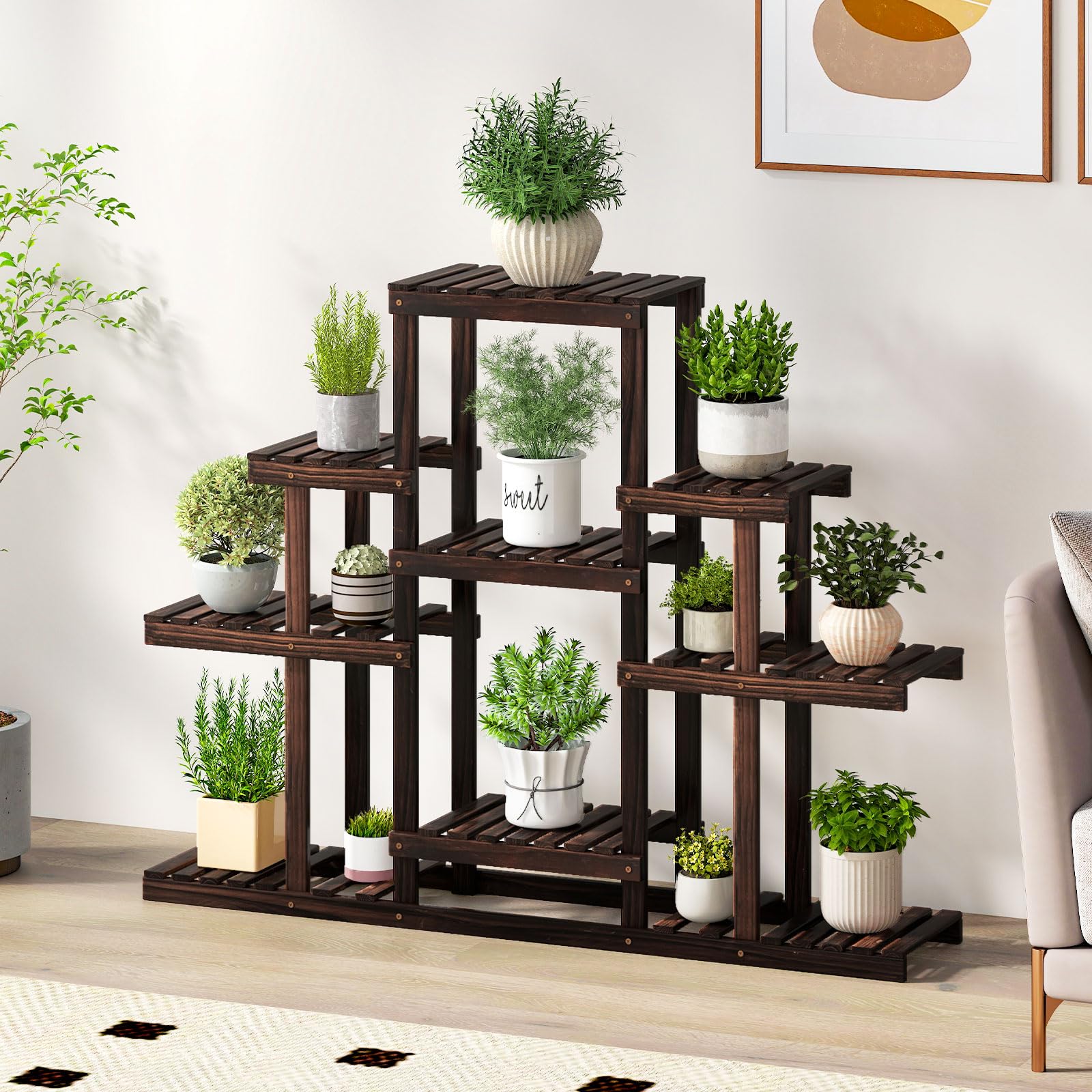 Morning light pours through your window as this wooden plant stand turns a blank wall into a mini greenhouse. Along the sill, herbs bask on the upper ladder, multi-tier plant shelf while low-light succulents relax below. Pull it to the balcony on weekends—its freestanding plant rack design and slim, space-saving footprint tuck neatly beside the window. In the entryway, the ladder plant rack greets guests with trailing vines, plus a photo frame or two for personality. Built from solid pine, it’s light enough to move for cleaning or seasonal rearranging, yet sturdy for everyday use. The open layout reduces shading so every leaf gets sunshine; slatted shelves boost airflow and help water drain after misting. With room for 10+ pots, this indoor outdoor plant stand doubles as a tasteful plant display shelf on covered patios. From apartment corners to sunny living rooms, it’s the easy way to grow more green in less space