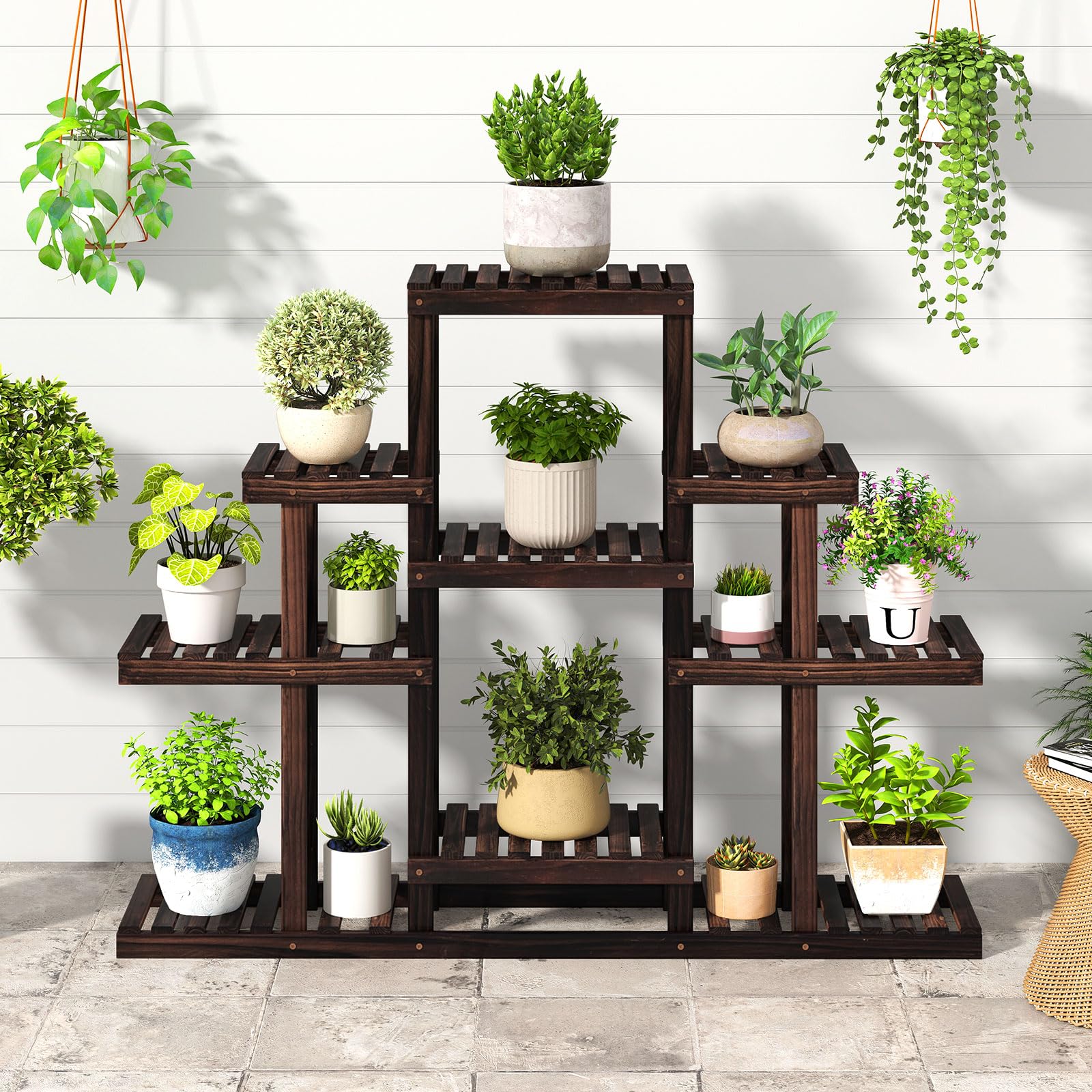 6-tier ladder layout forms a multi-tier plant shelf for 10+ pots.