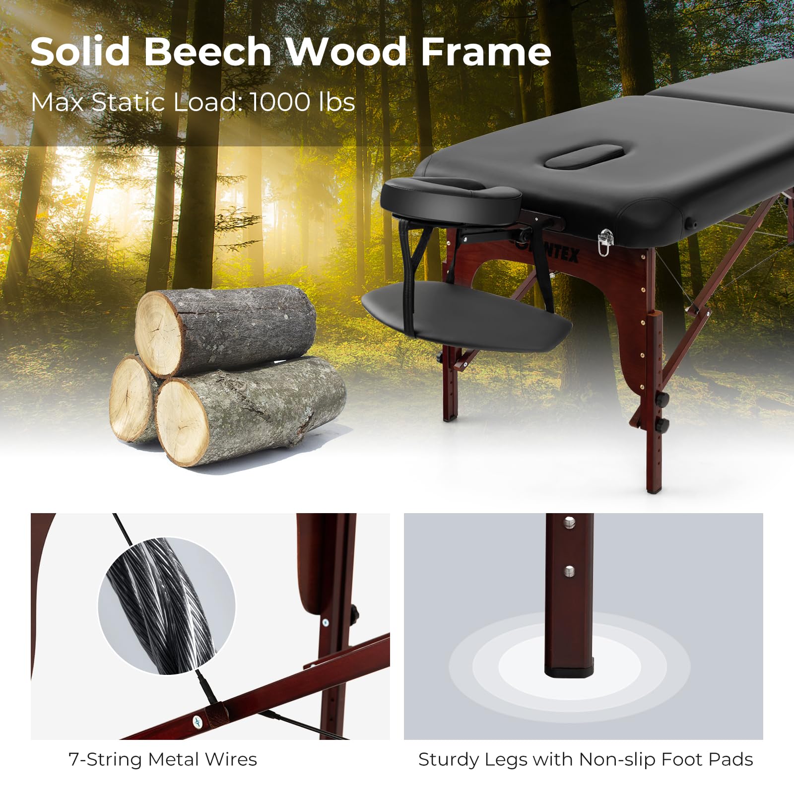 - Solid Beech Wood Frame: Crafted with robust beech wood, the portable spa bed boasts a max static load of 1000 lbs. It is further reinforced by 7-string metal wires, and the sturdy legs with non-slip foot pads ensure excellent stability.
