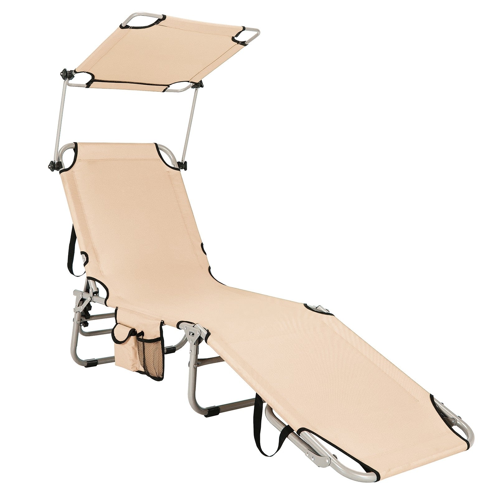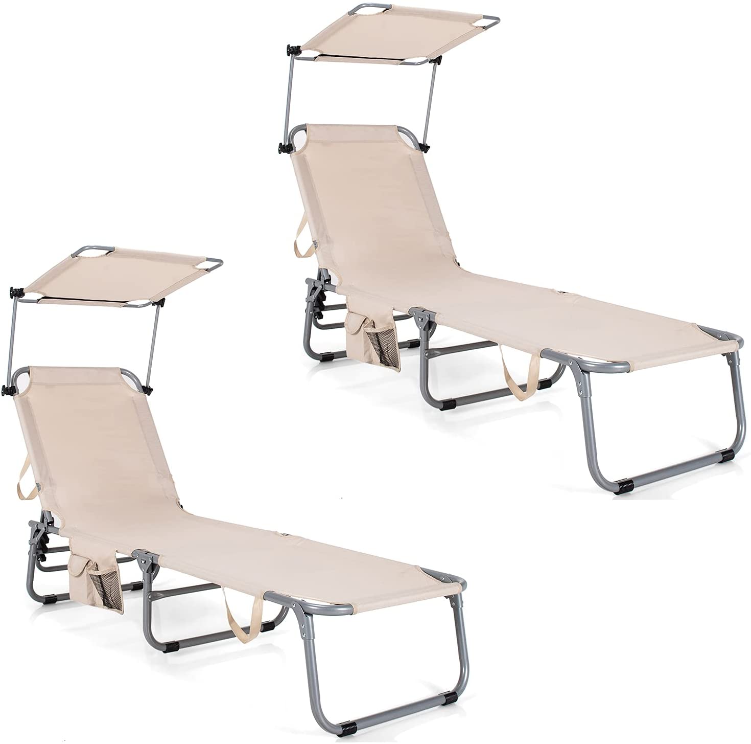 - Rotatable Canopy Shade: Different from other common recliners, this high quality reclining chair comes with 360 degrees rotatable canopy shade which allows you to adjust it into any desired angle according to the changing position of the sun. In addition, you can put the sunglasses and drinks into the side storage pocket.