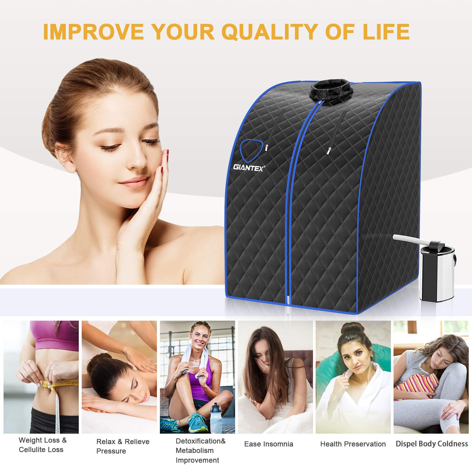 - 【Excellent Heating Capacity】: With 9 timer settings (15-90 minutes) and 9 temperature settings up to 149°F, this portable sauna can aid in weight loss, boost metabolism, reduce stress, and enhance sleep quality. The 800W power ensures quick and effective steam production for a comfortable experience.
