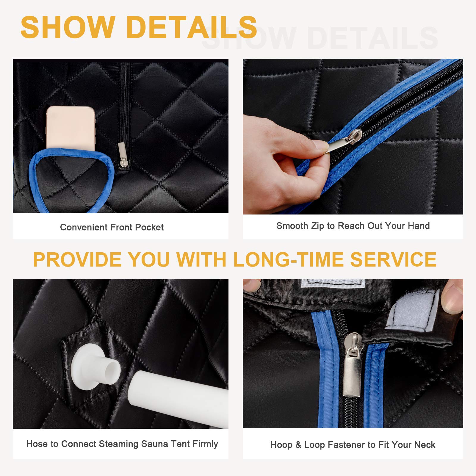 - 【Sauna Spa for Home】: This steam sauna offers the convenience of spa treatments at home, saving you money on visits to beauty salons. Made with waterproof fabric for enhanced heat insulation, it features a front pocket for easy storage of the remote control. Two zipper openings allow you to relax with movies or books while using the sauna.