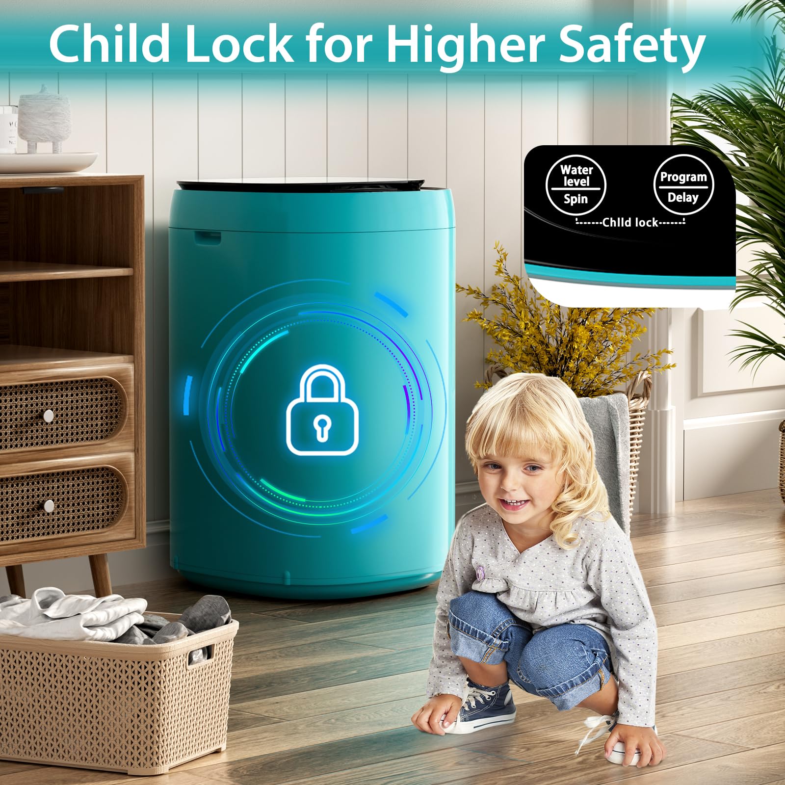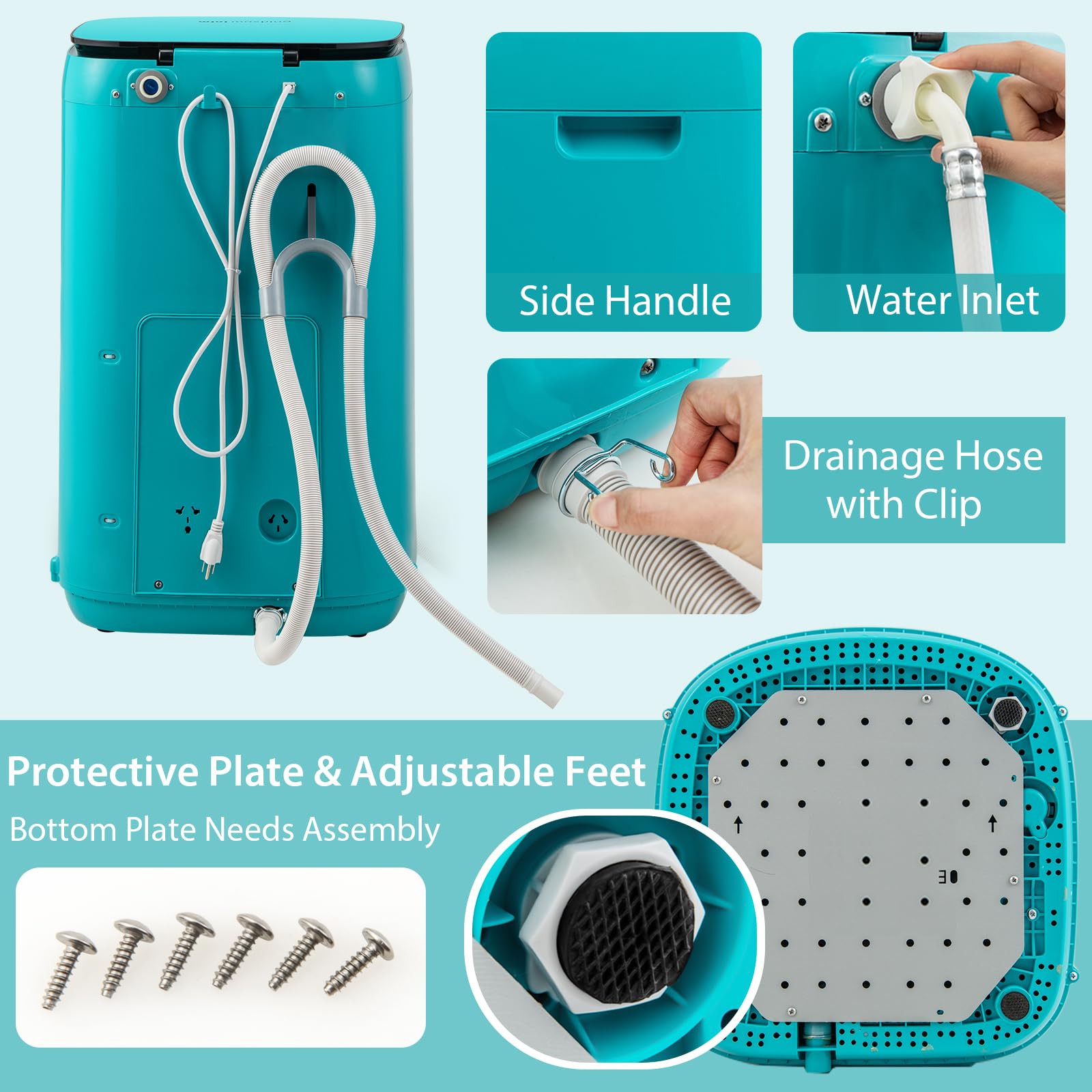 - High-Performance Portable Washer: The fully automatic washing machine provides awesome cleaning and rinsing performance. 240W washing power & 210W spinning power meet the performance requirements for powerful use while saving time and energy, helping you get the cleaning job done more efficiently.