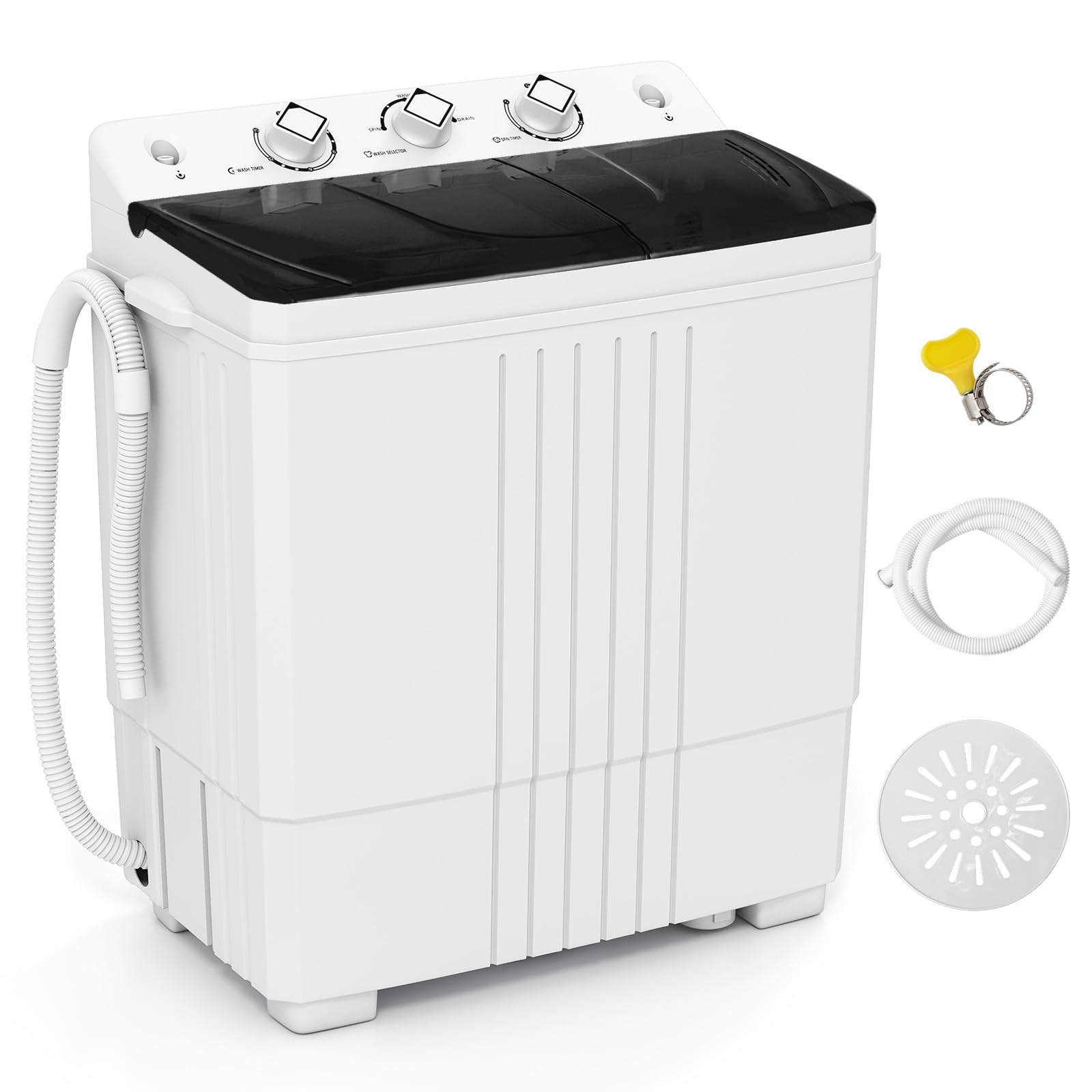 This twin tub washing machine boasts a 260W washing motor and a 140W spinning motor that endow it with high working performance. Meanwhile, the 12 lbs wash tub and 8 lbs spin tub can accommodate various types of clothes, allowing efficient cleaning. Equipped with easy-to-use knobs, this laundry machine features mode and timer control, enabling you to enjoy personalized washing time with 15 Mins wash timer and 5 Mins spin timer. There are also 2 water inlets for flexible water injection. Additionally, this washing machine is designed with convenient drainage system for effortless water outlet. Its compact size is perfect for small spaces in your home, apartment, dorm or RV.