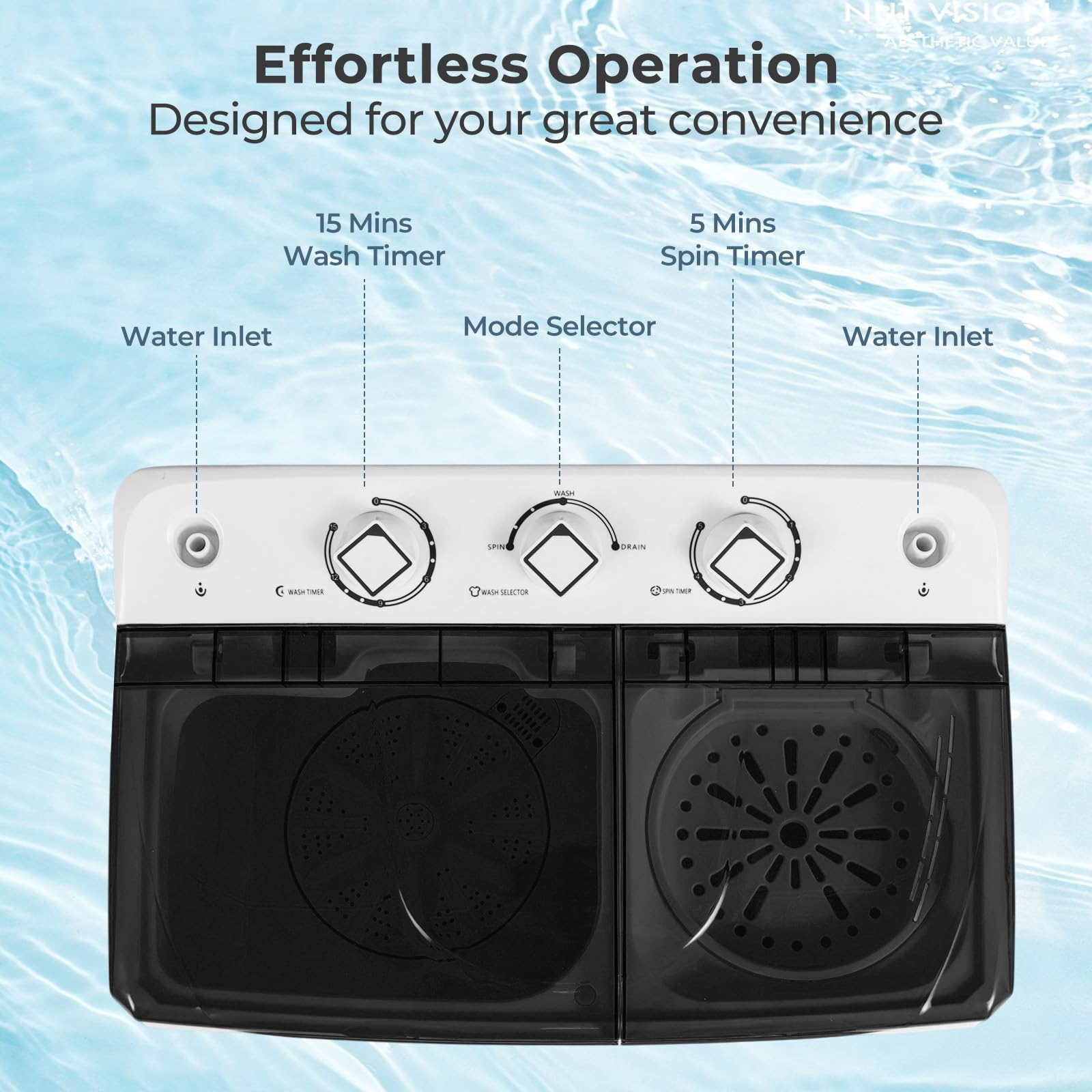 Customize your washing time with 15 mins wash timer and 5 mins spin timer