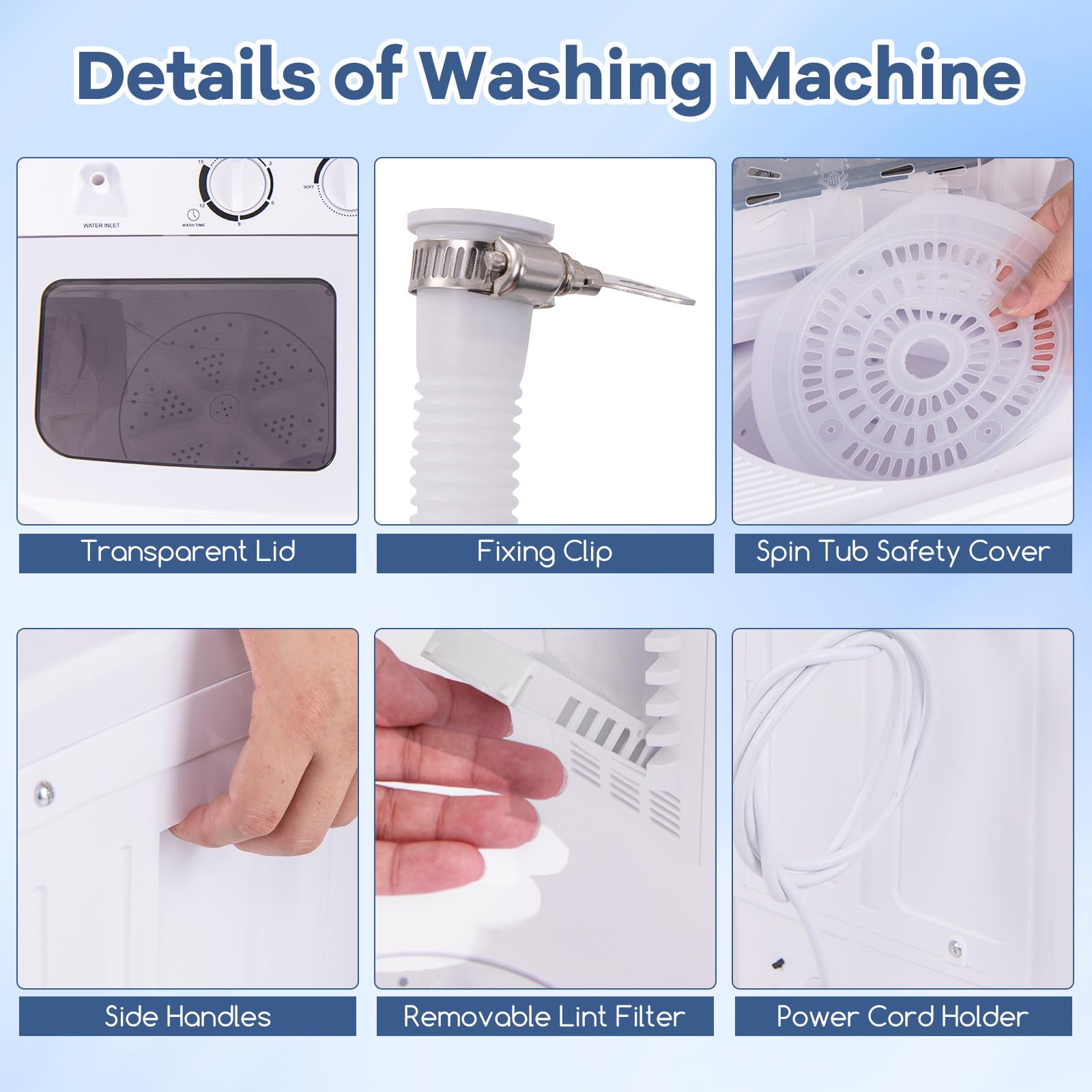 - Compact and Convenient Design: Perfect for home use, this washing machine features a filter net for easy cleaning and a cover plate to stabilize the spin tub. Assembly is simple, with all necessary accessories included in the package.