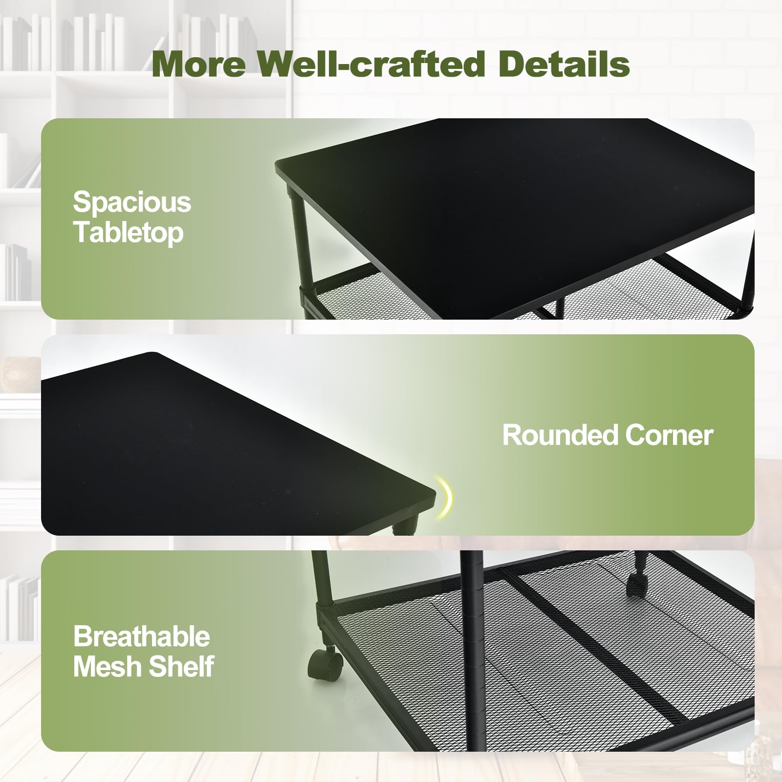 • Adjustable Storage Solution: Featuring 2 height-adjustable metal mesh shelves, this printer cart allows for easy customization of storage options. Tailor the shelf heights to accommodate items of varying sizes and heights by positioning the shelves at your desired levels and securing them with convenient plastic clips.