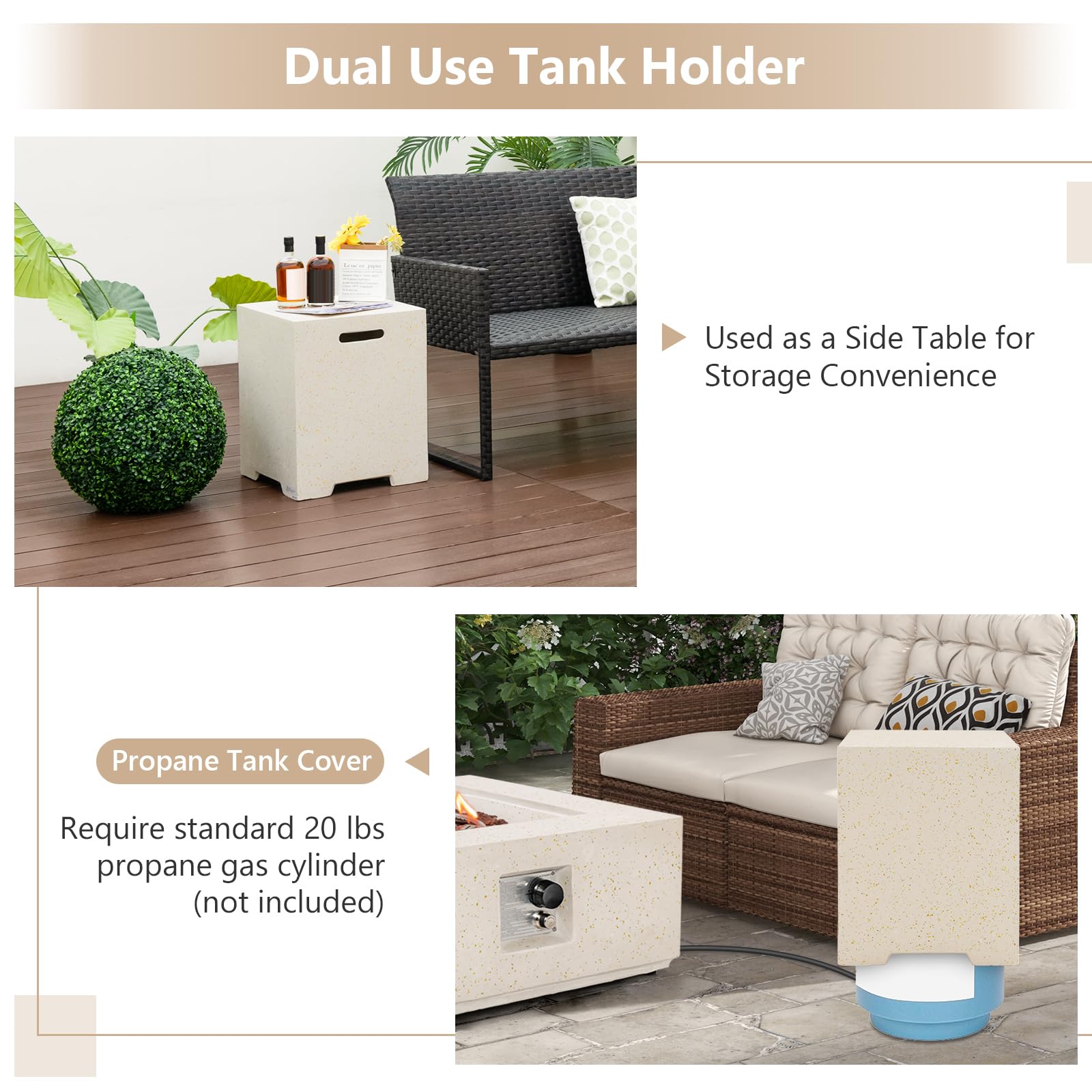 - ?【Dual-Purpose Hideaway Tank Holder】- The cleverly designed propane tank cover table not only conceals a 20 lbs propane tank (not included), but also doubles as a convenient side table for storage. This feature both elevates your outdoor space and adds practicality to your setup.
