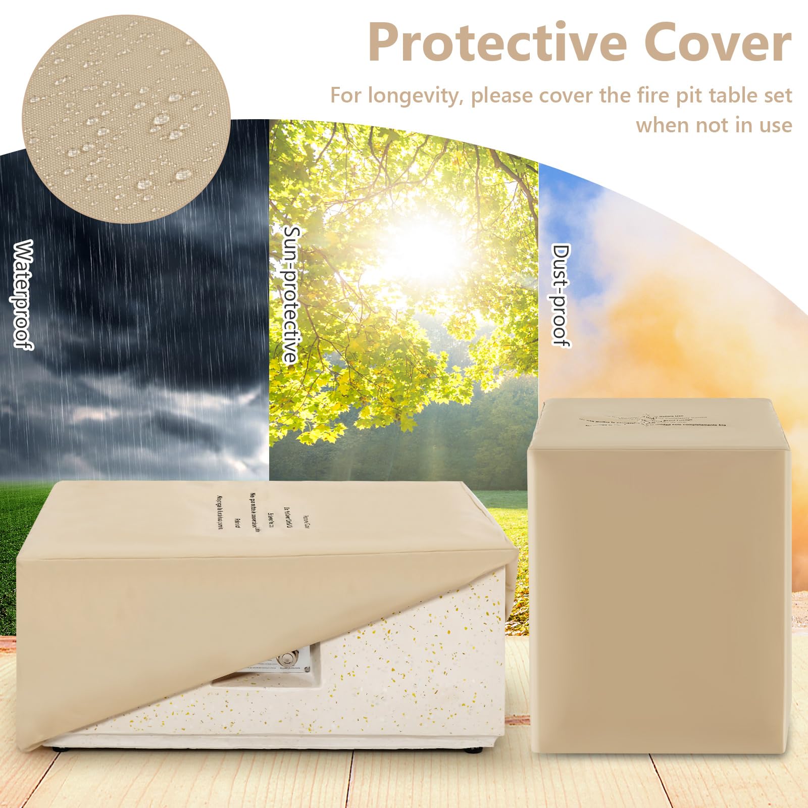 - ?【Terrazzo Fire Pit Set with Protective Covers】- Crafted with high-quality terrazzo material, this fire pit set is resistant to weather conditions and ensures durability. The included protective cover is waterproof, sun-protective, and dust-proof, allowing you to enjoy your outdoor activities for a long time.
