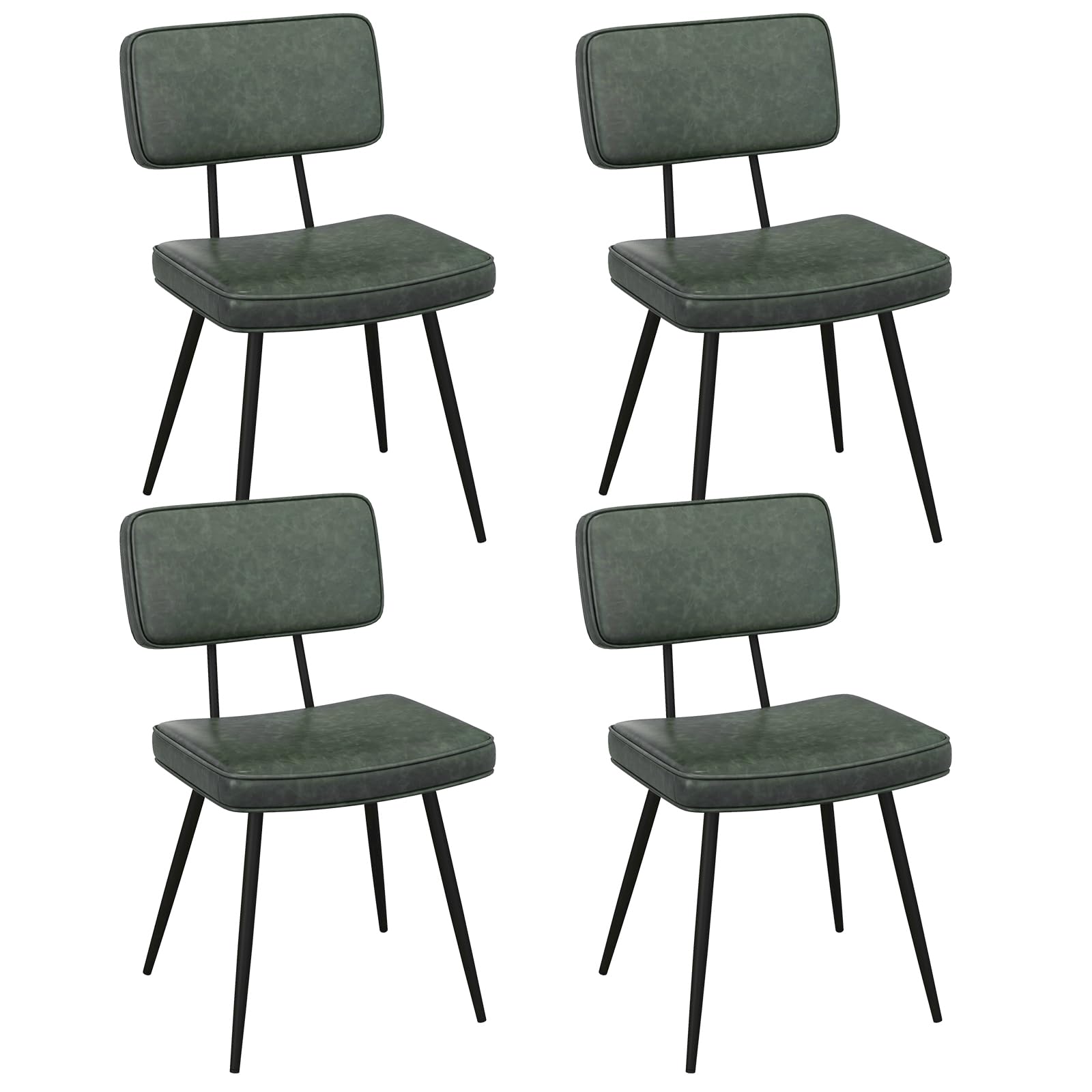 Maintaining good posture is essential for overall health. The tilted backrest and curved wide seat of these modern style dining chairs promotes a relaxed and healthy posture, reducing the strain on your back and hip. Furthermore, the premium upholstered seat & backrest with sponge filling will making extended sitting more comfortable. Plus, the faux PU leather covering not only adds a touch of luxury but also ensures maintenance a breeze. With metal tapered legs and reinforced bottom structure, the mid century dinner chairs can hold up to 330 lbs. Also, the anti-slip foot pads help prevent scratches on your hardwood or tile floors. Furthermore, the vintage style these kitchen chairs bring will elevate the overall aesthetic of your dining spaces.