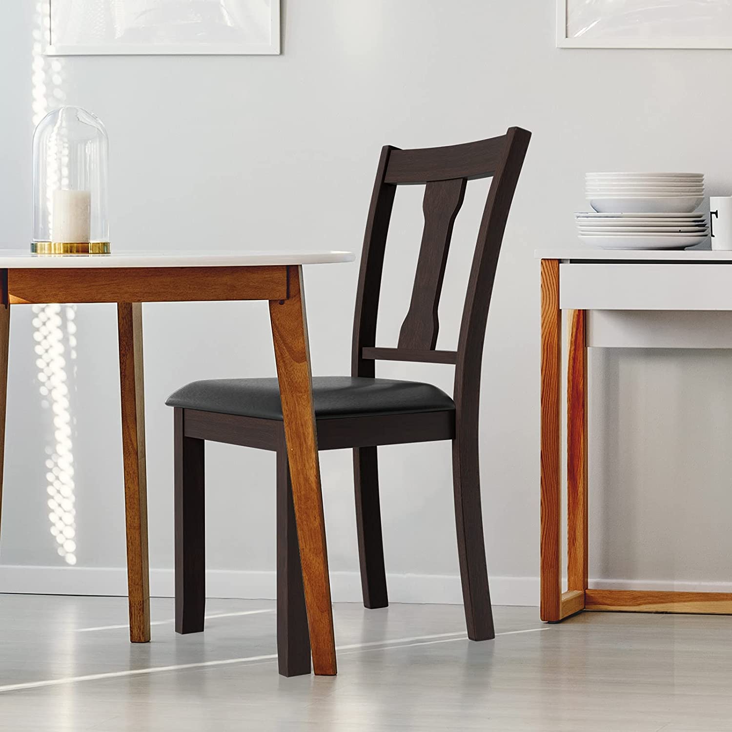 Giantex PVC Leather Modern Wood Dining Side Chair