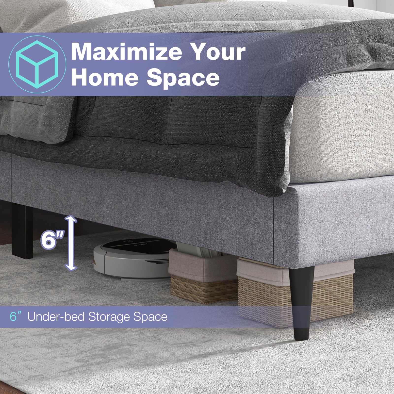 - Under-bed Storage Space: The 6" sufficient under-bed space helps to maximize bedroom layout, making it easy to keep your room clutter-free. Meanwhile, it offers a convenient place to stow away linens, clothes, or shoes.
