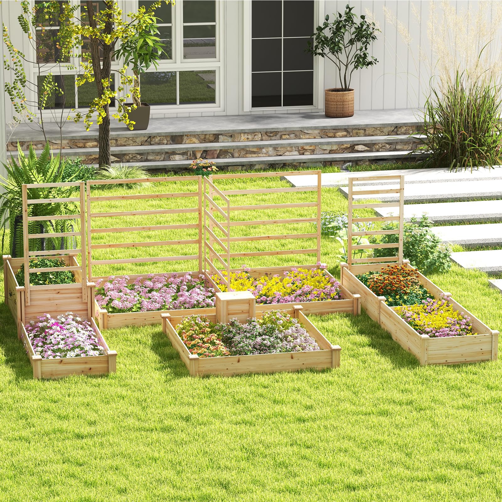 Our planter bed is gifted from nature, which is made of sturdy and crack-resistant fir wood. With excellent craftsmanship, the natural wood grain and burr-free surface make its a perfect addition to your outdoor space. With spacious 11 Cu.ft capacity, the planter box provides ample room for your favorite flowers, fruits, vegetables, and herbs to flourish. The large planter box with open-ended design will promote drainage and maintain soil nutrients, ensuring the optimal conditions for healthy plant development. Besides, our raised garden box includes a wood compost bin, which can promote waste reduction and environmental sustainability. Our planting bed is equipped with slotted posts for easy assembly. Additionally, the reinforced top corner will enhance the stability of the planter box. And you can customize the elevated planter by painting it to your desired appearance.