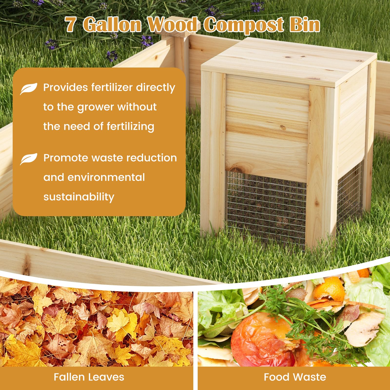 7 Gallon wood compost bin can break down fallen leaves & food waste Equipped with slotted posts for easy assembly