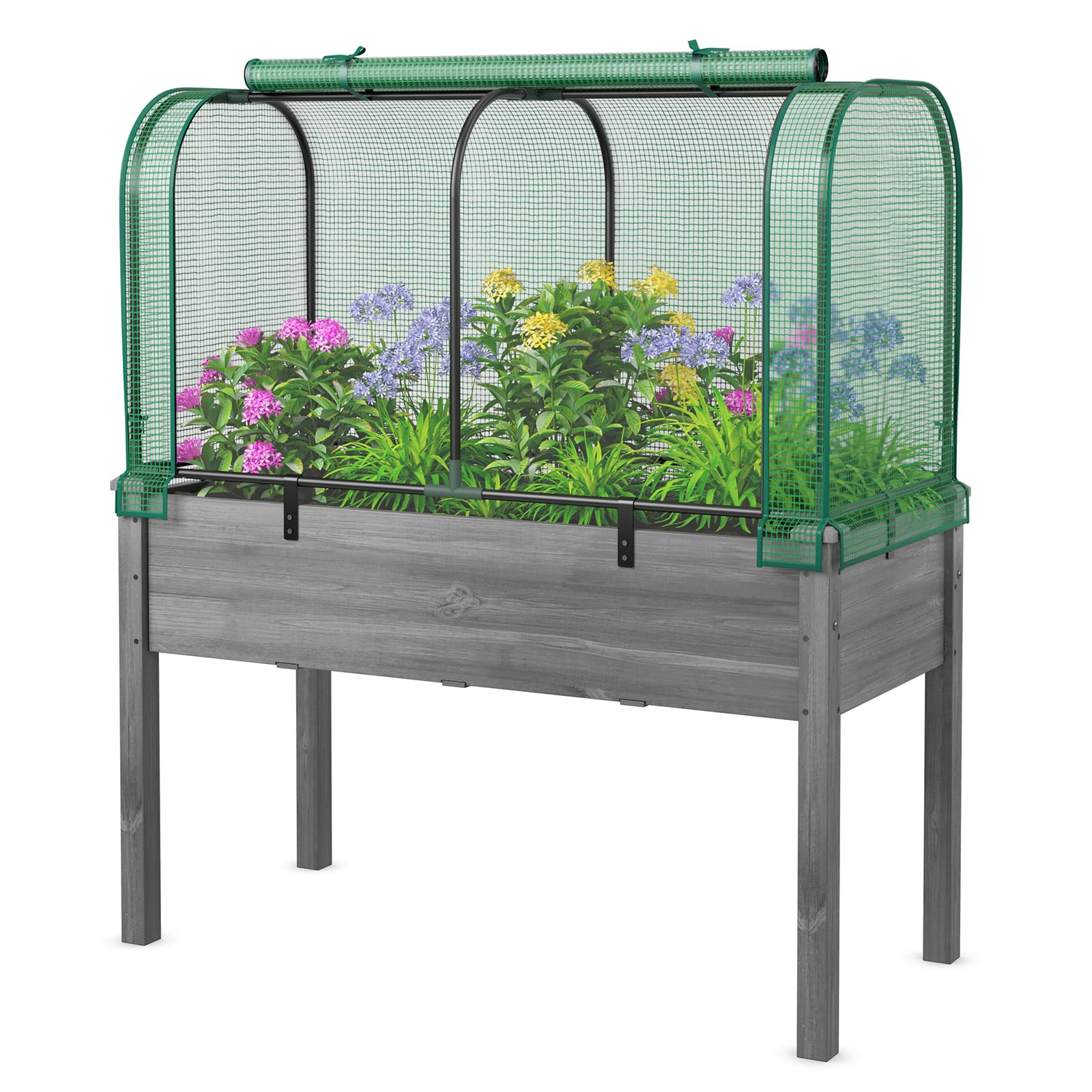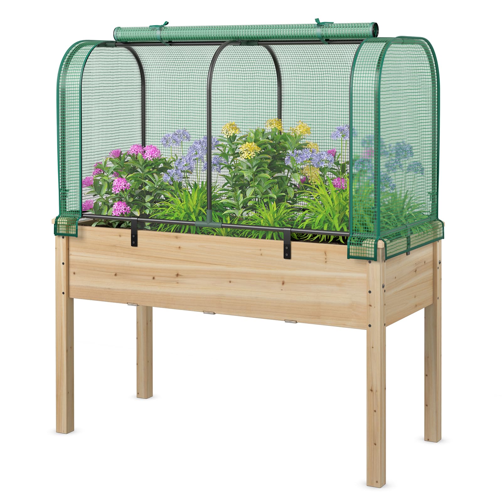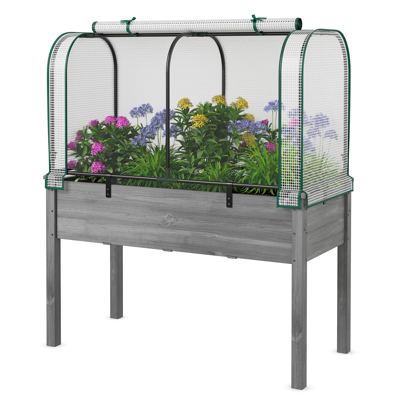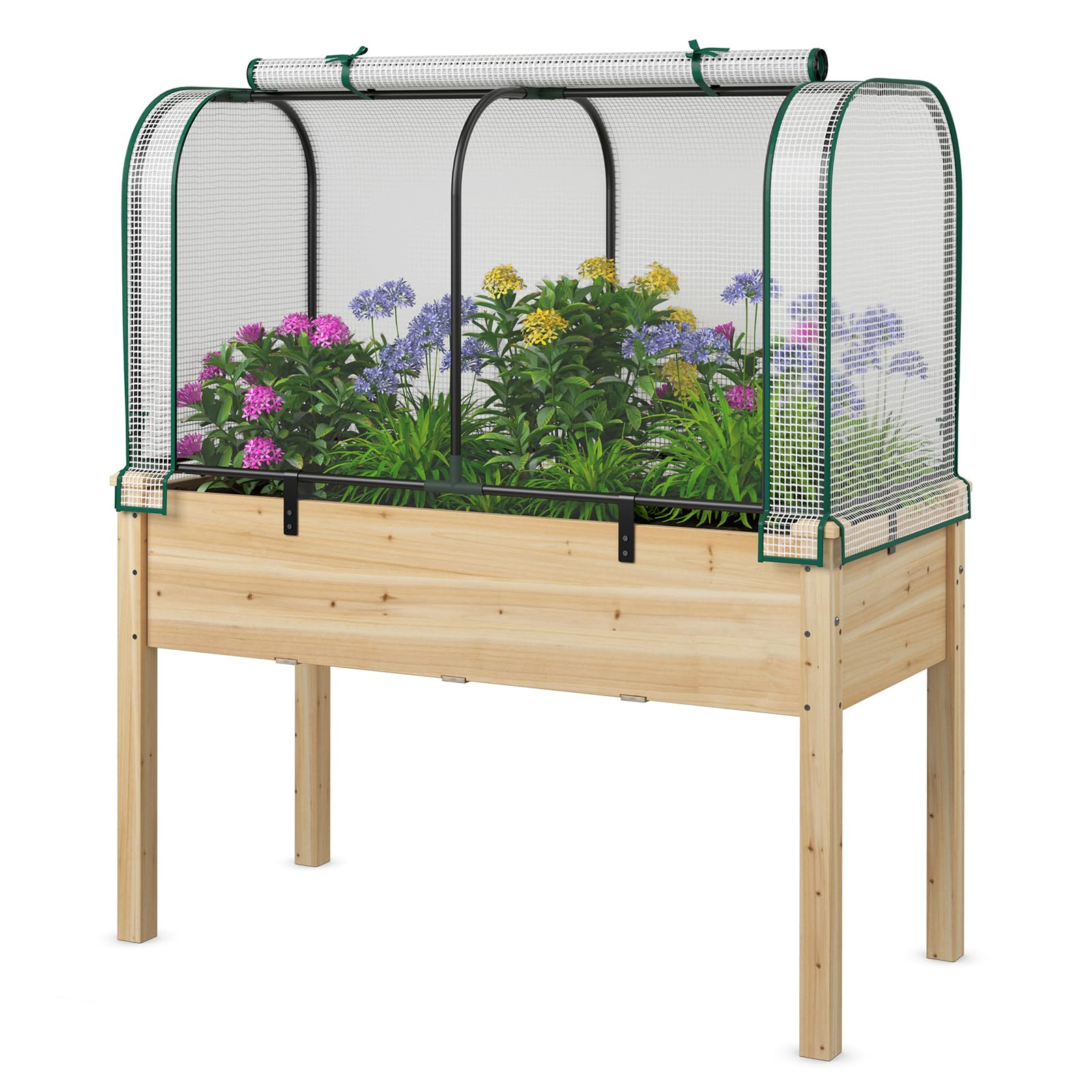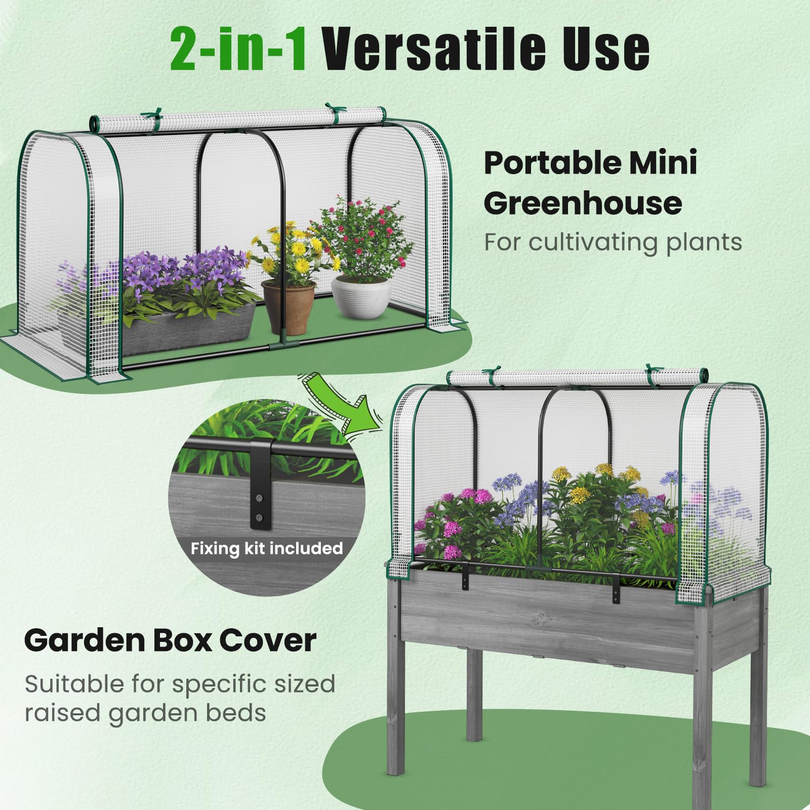 Our 2-in-1 raised garden bed set includes an elevated planter box with legs and a mini greenhouse cover, providing a perfect home for your lovely plants all year round. Crafted from premium fir wood, this planter offers not only a sturdy and versatile planting space but also adds a touch of rustic charm. The included greenhouse cover, made of reliable PE material, provides a protective shield for your plants. Furthermore, the planter and cover can be used separately or combined, complete with 6 fixing kits for securing, offering immense flexibility to suit your gardening needs. When used individually, the planter box with 30” height could protect plants from damage or nibbling by wildlife, while the greenhouse is equipped with ground stakes and overlong covers for enhanced wind resistance. Elevate your gardening game with this all-in-one solution that offers not just practicality but also style to your outdoor space.