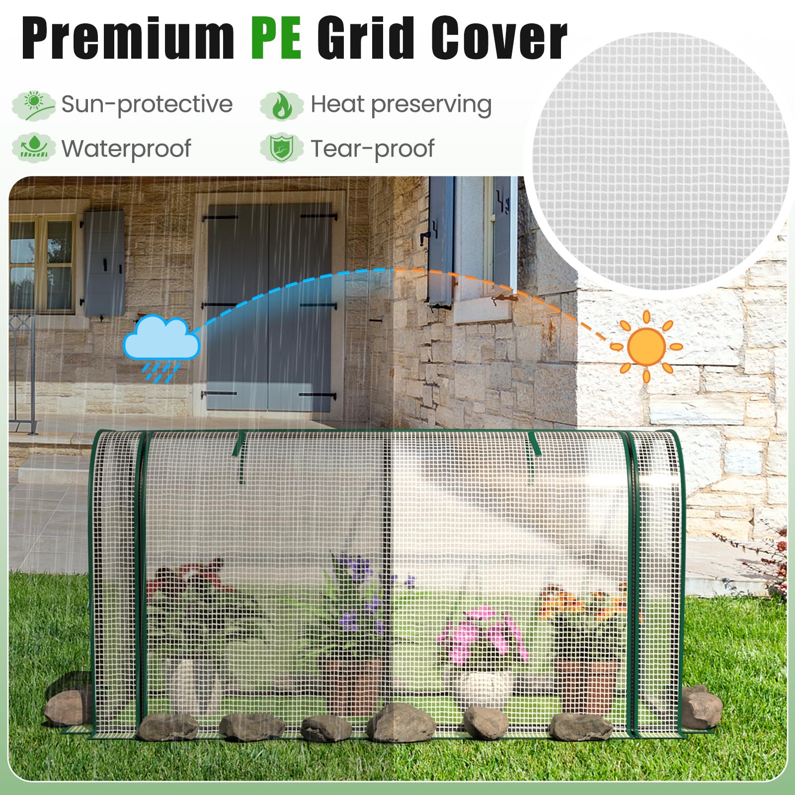 Features a large roll-up door with zippers, promote ventilation, easy to water