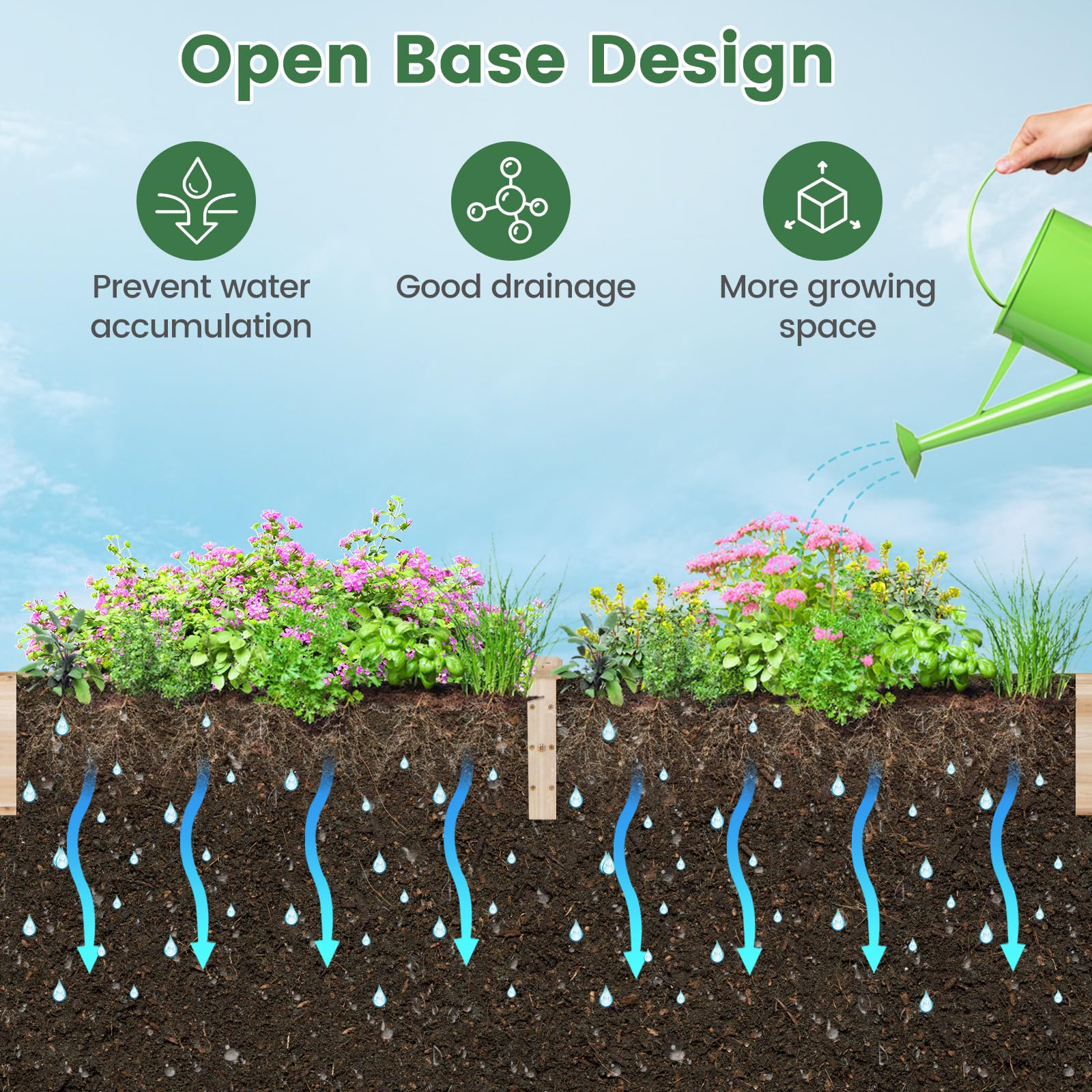 - [Open Bottom Planter]: Our plant bed features an efficient drainage system, that prevents water accumulation and ensures good drainage for your plants. Additionally, the open base design promotes healthy plant root growth, allowing your plants to thrive and prosper.