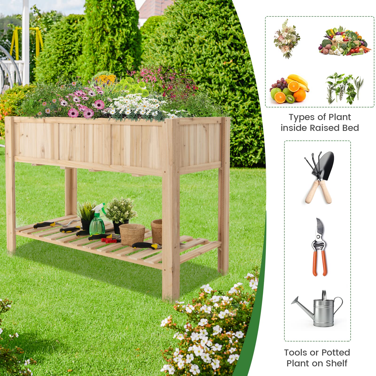 Sturdy Fir Wood Structure: The garden bed is made of natural fir wood for excellent strength and durability and is suitable for outdoor use. In addition, four reinforced crossbars at the bottom of the planter box and four 2.5'' thick legs make the garden bed stable and strong, bearing 309 lbs.