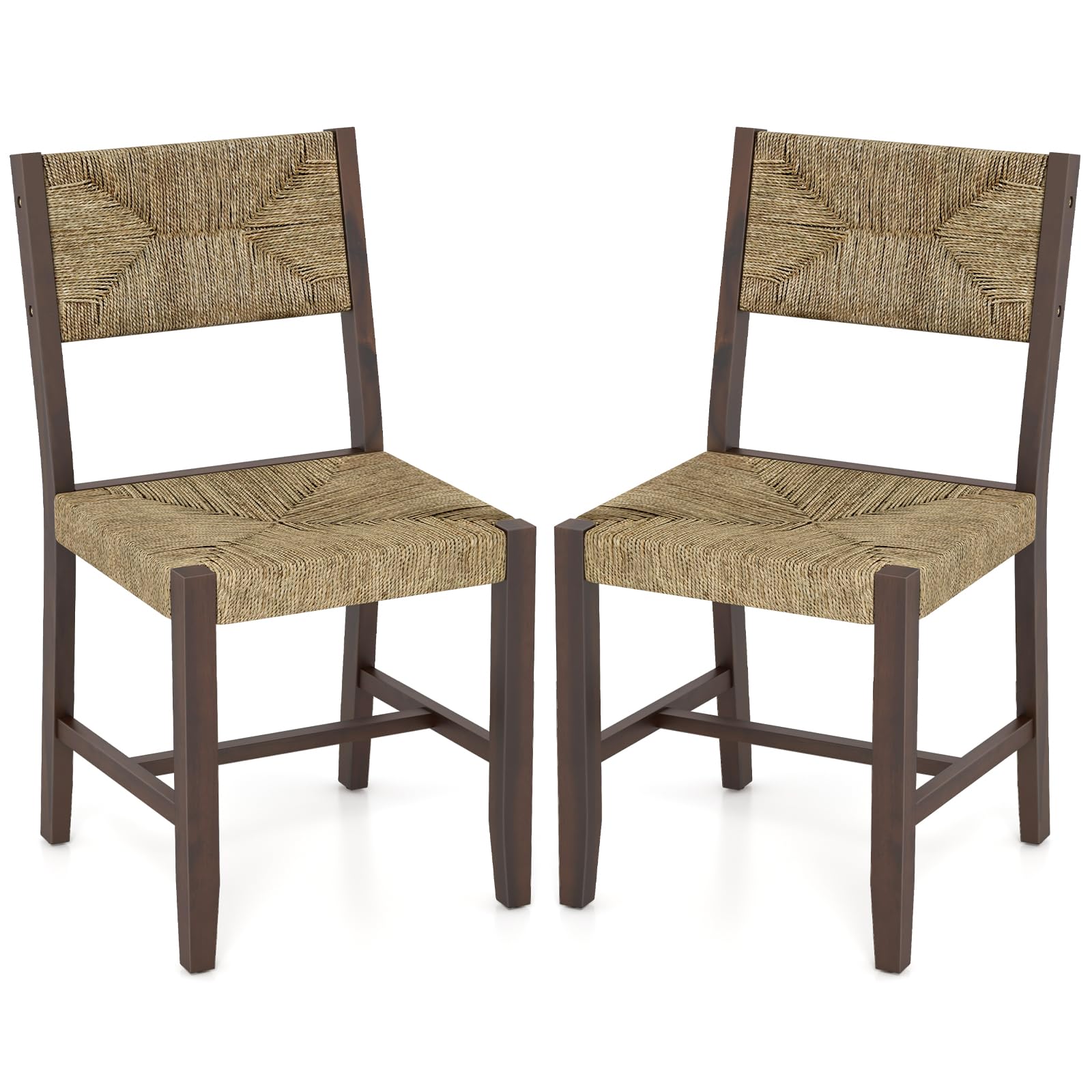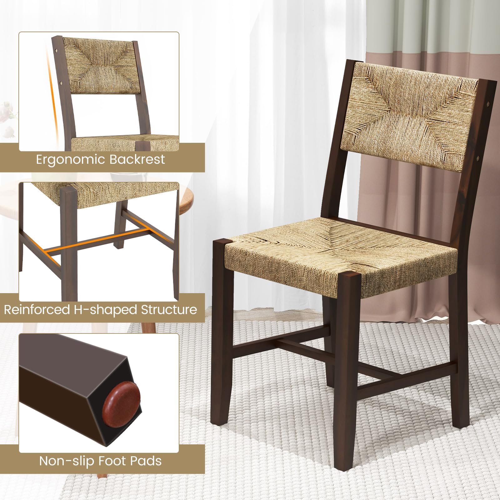 Crafted from the natural hand-woven seagrass, this dining chair set is designed for those who appreciate both the art of craft and the comfort of home living, which enhances any dining settings, from farmhouse kitchens to coastal-themed restaurants. The rubber wood and acacia wood frame offer stability, while the handwoven seagrass providing a comfortable and breathable seating experience. Moreover, the ergonomic backrest and wide seat supports a relaxed posture, perfect for long conversations over dinner or a peaceful retreat to your morning coffee.