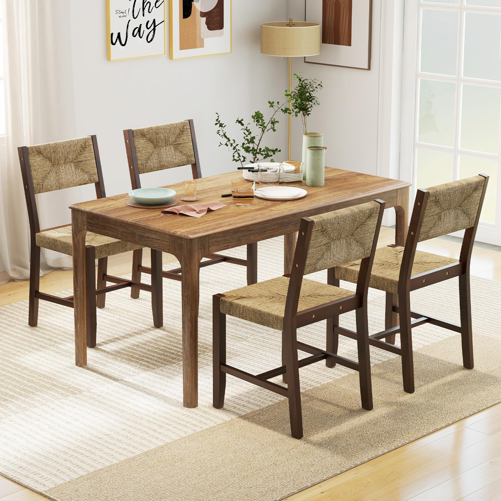 - [Exquisite Seaweed Weave Back & Seat]: Crafted with a natural seaweed rattan backrest and seat, this wood dining chair offers optimal airflow and comfort during long meals. The rattan material not only provides durability, but also ensures sustainability for long-term use.