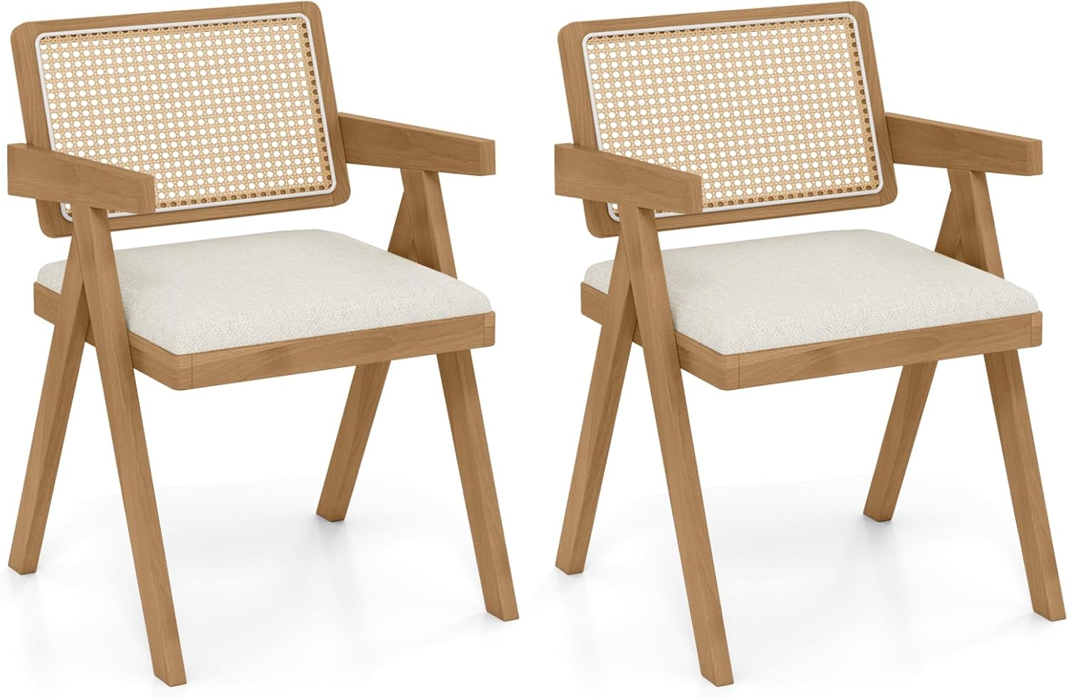 The rattan side chair set combines farmhouse charm with selected PE rattan material, exuding elegance and enduring quality. Each dining chair provides ergonomic support with the inclined backrest, comfy armrest, and comfortable padded seat. The robust wooden structure is made of natural rubber wood and is sturdy enough to support up to 330 lbs. The reliable triangle design allows for added stability. Made with skin-friendly leathaire material and elastic sponge, these side chairs ensure hours of relaxation. Versatile and adaptable, they are perfect for kitchens, dining rooms, and living rooms, seamlessly blending with any decoration to deliver both style and functionality.